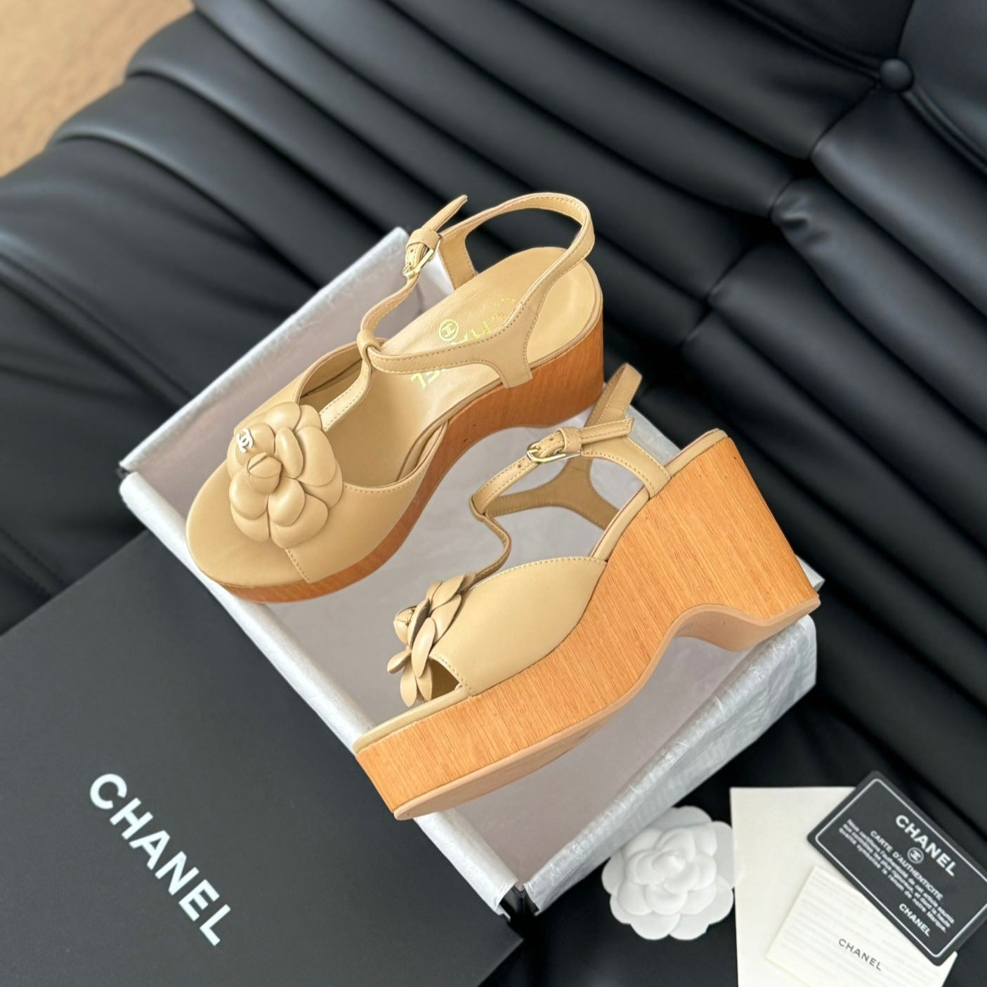 Double C New Wood Grain Platform Sandal Tan Brown Lambskin