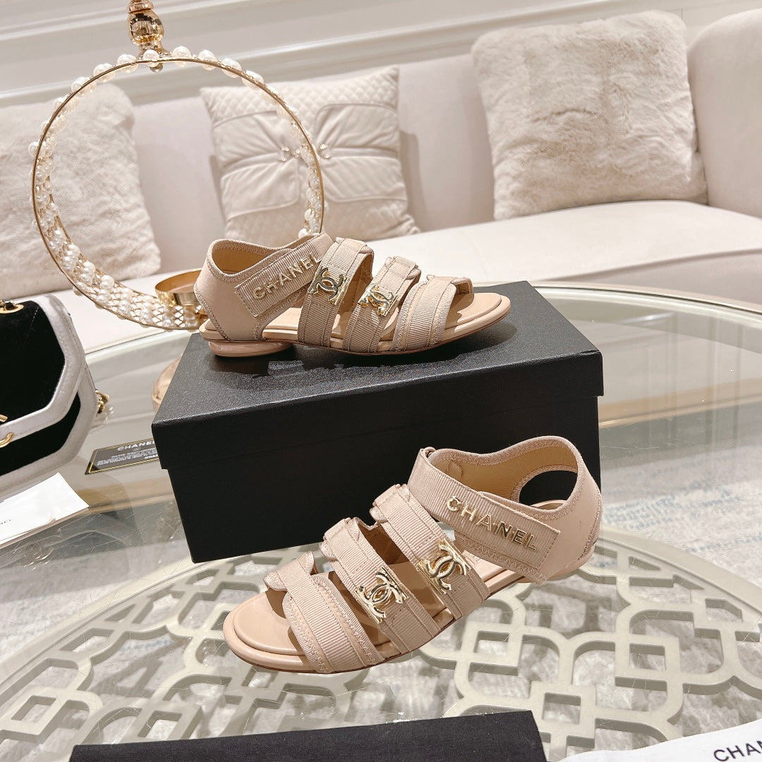 Double C  Xiaoxiang Chain Fabric Head Chunky Sandal Cream Lambskin