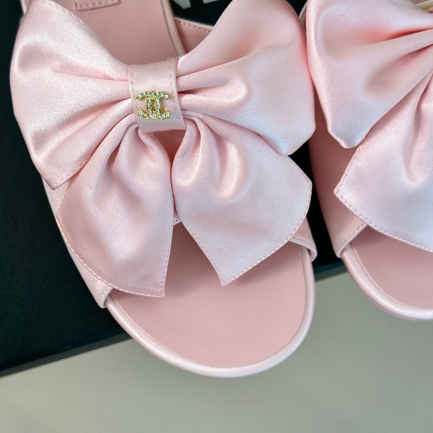 Double CC big bow flat sandals Sheepskin Light Pink