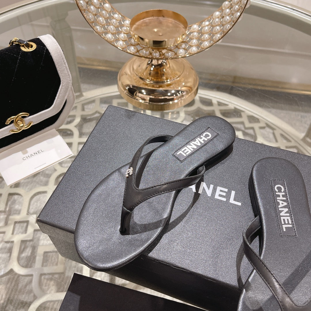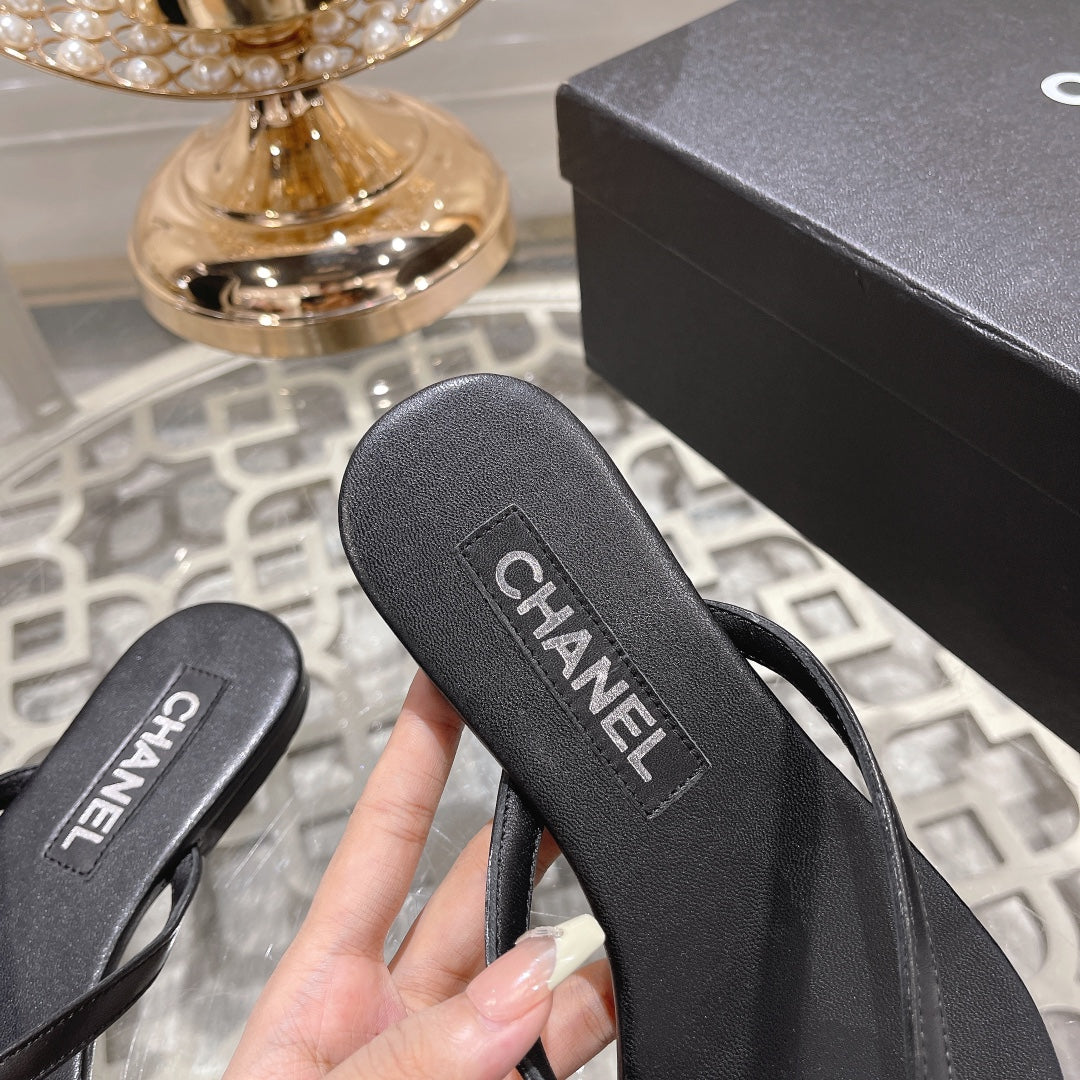 Double CC Flip Flop Thongs Black Sheepskin