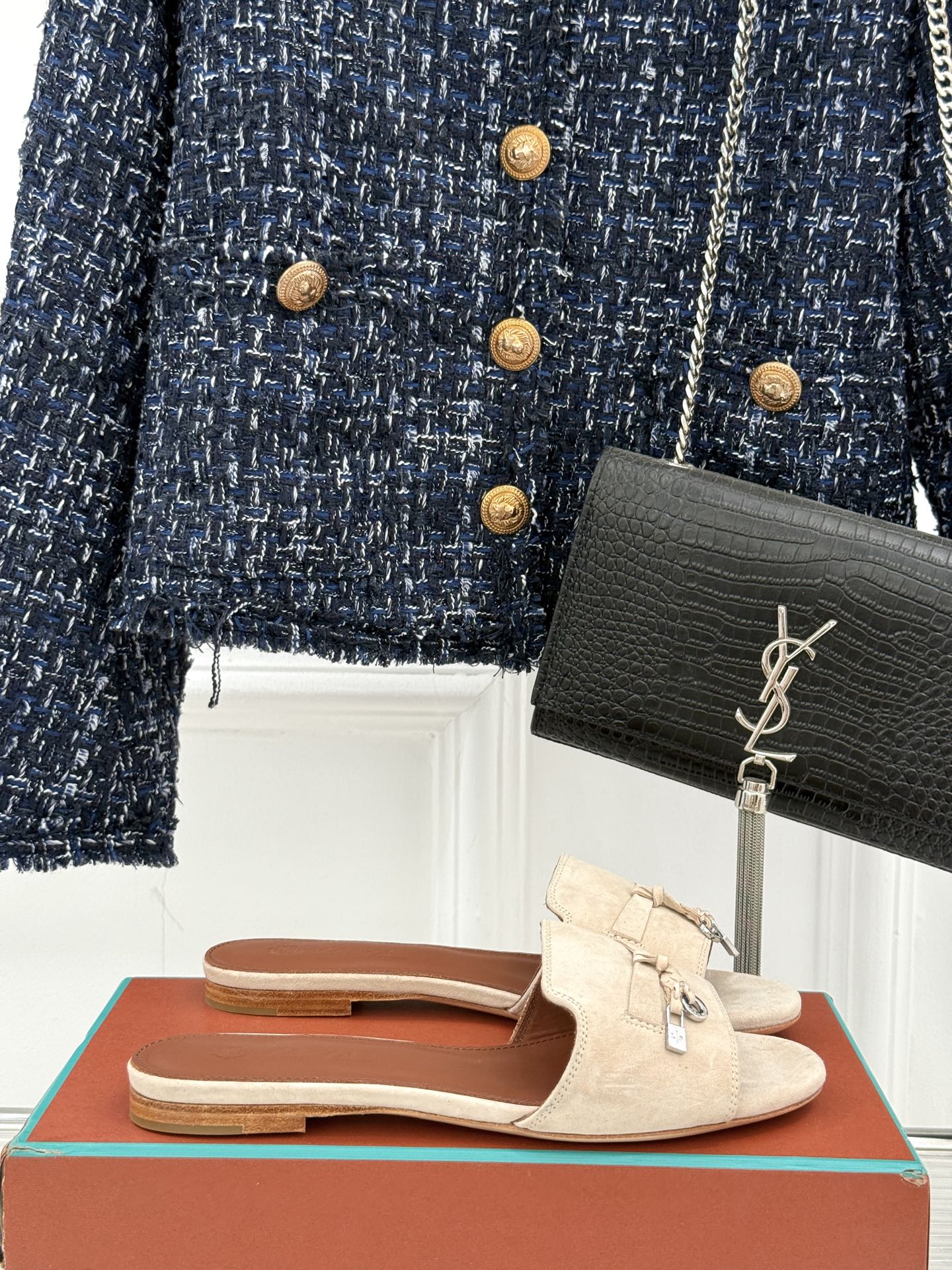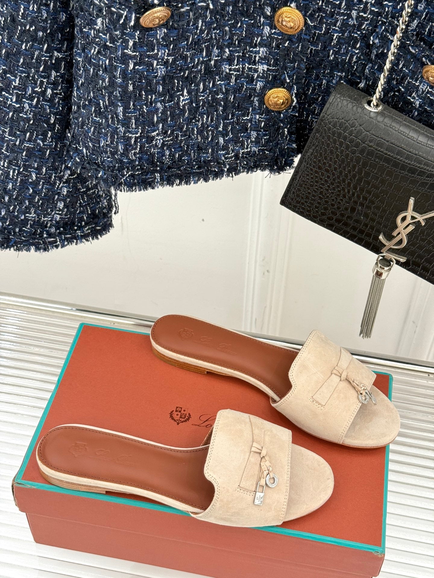 FLAT SANDALS IN BEIGE SUEDE AND LAMBSKIN