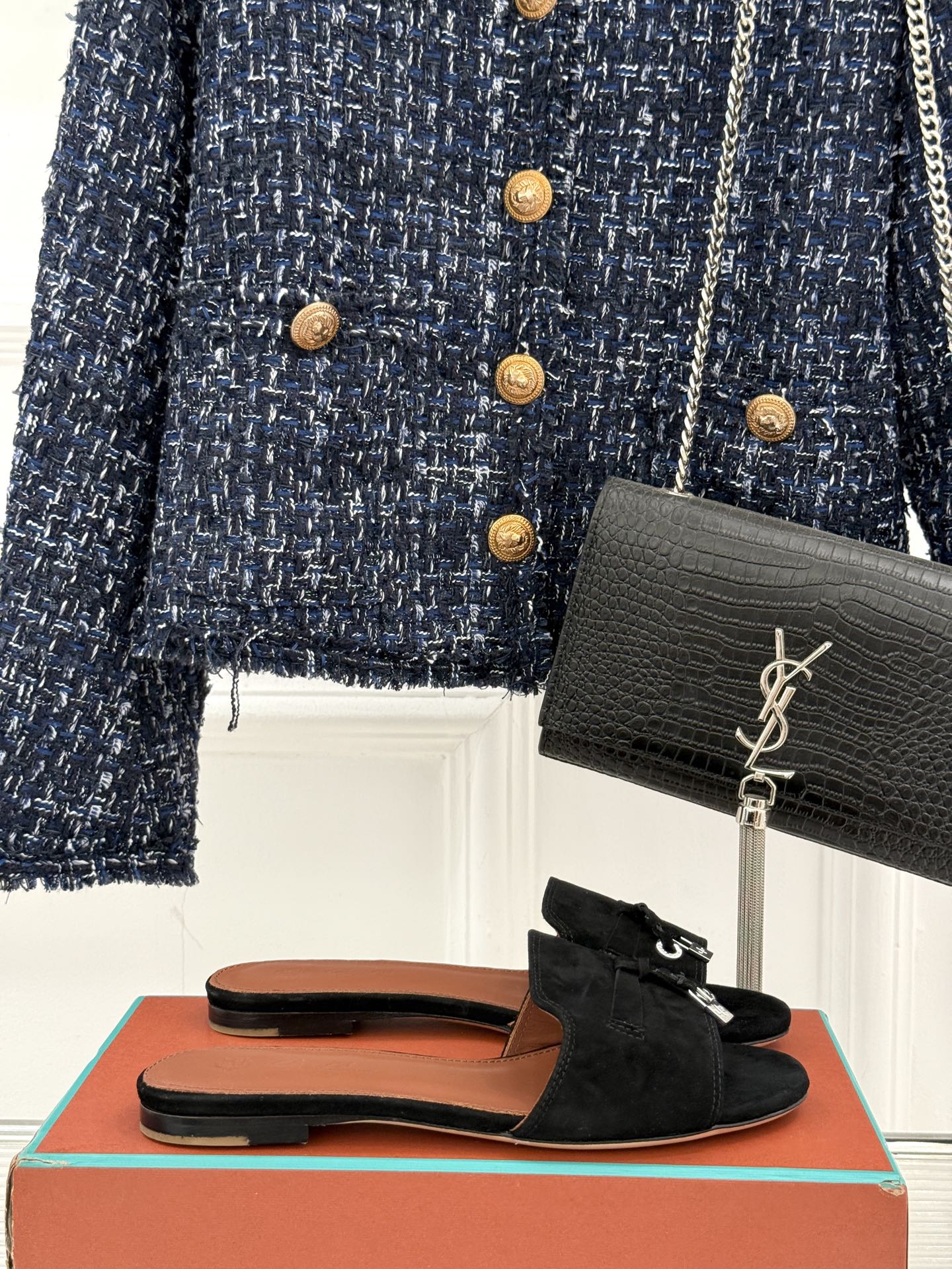 FLAT SANDALS IN BLACK SUEDE AND LAMBSKIN