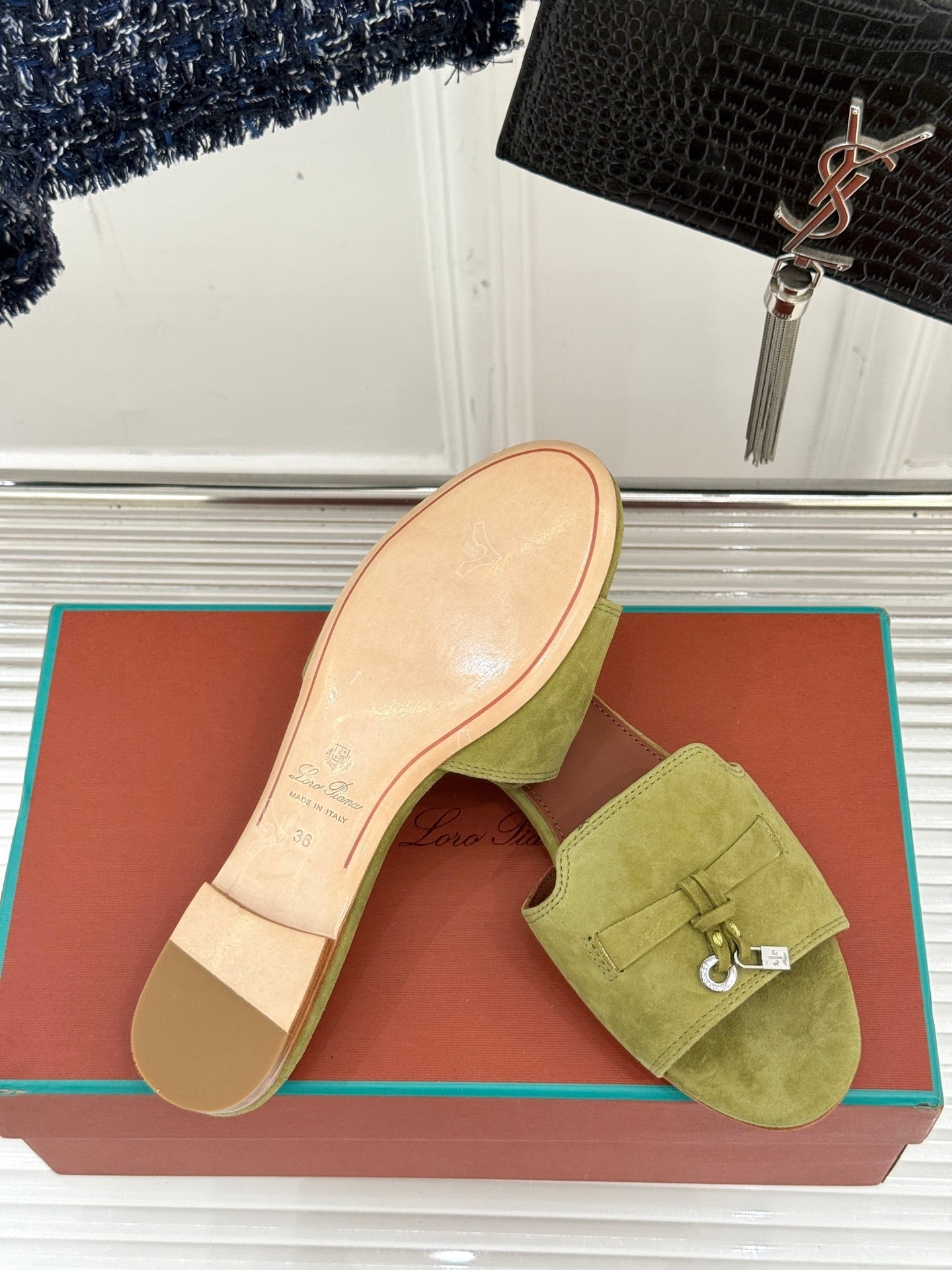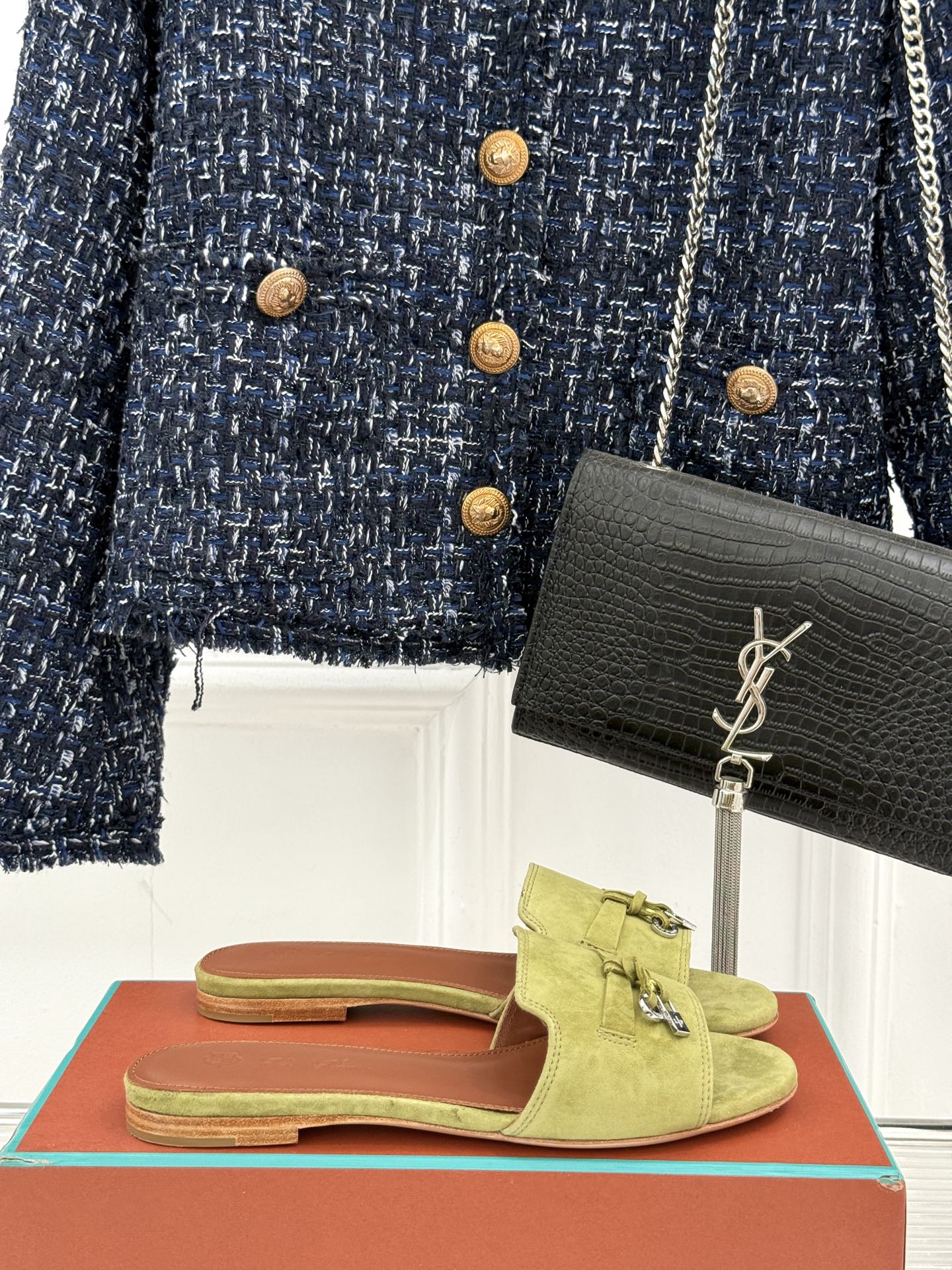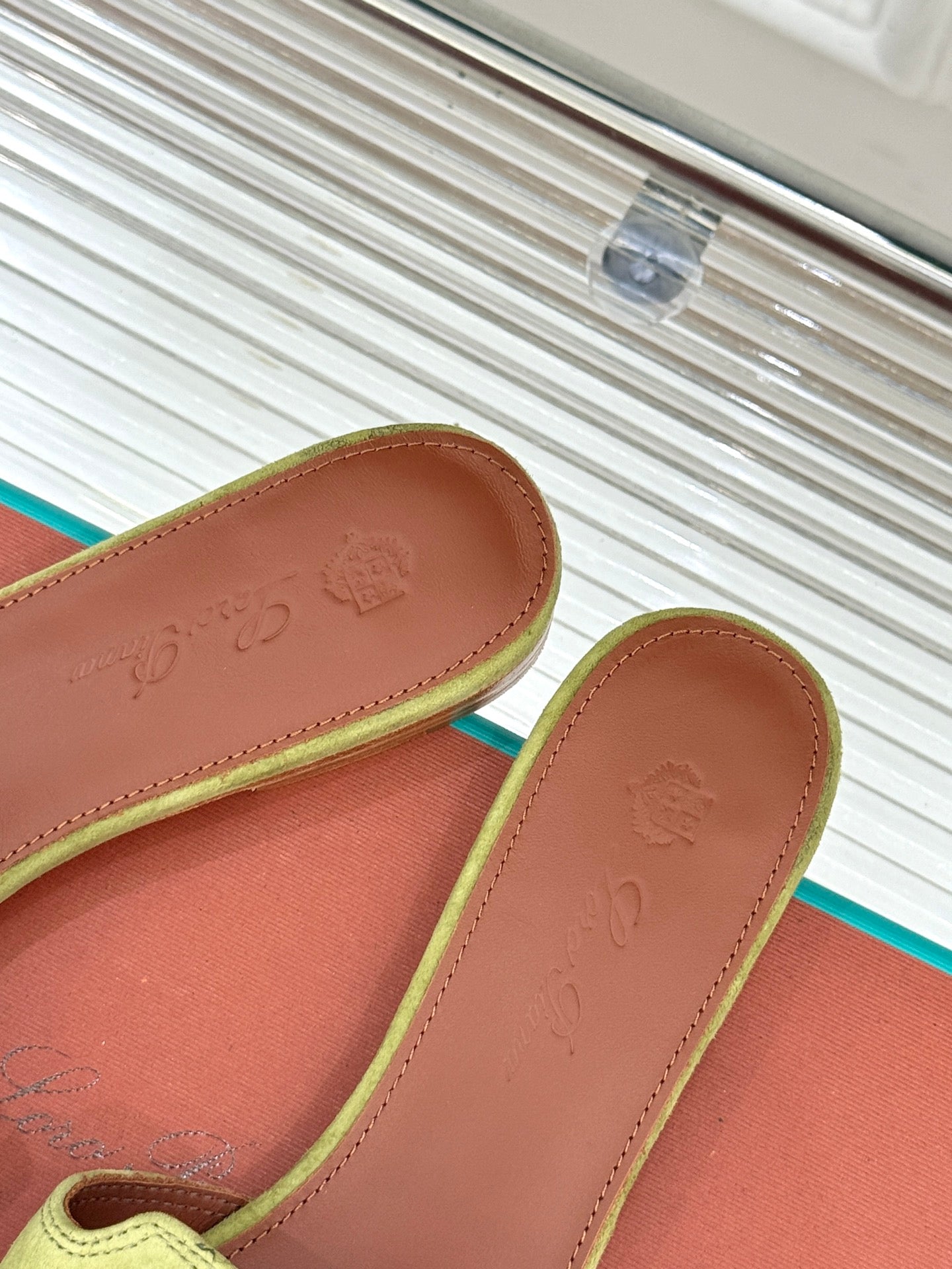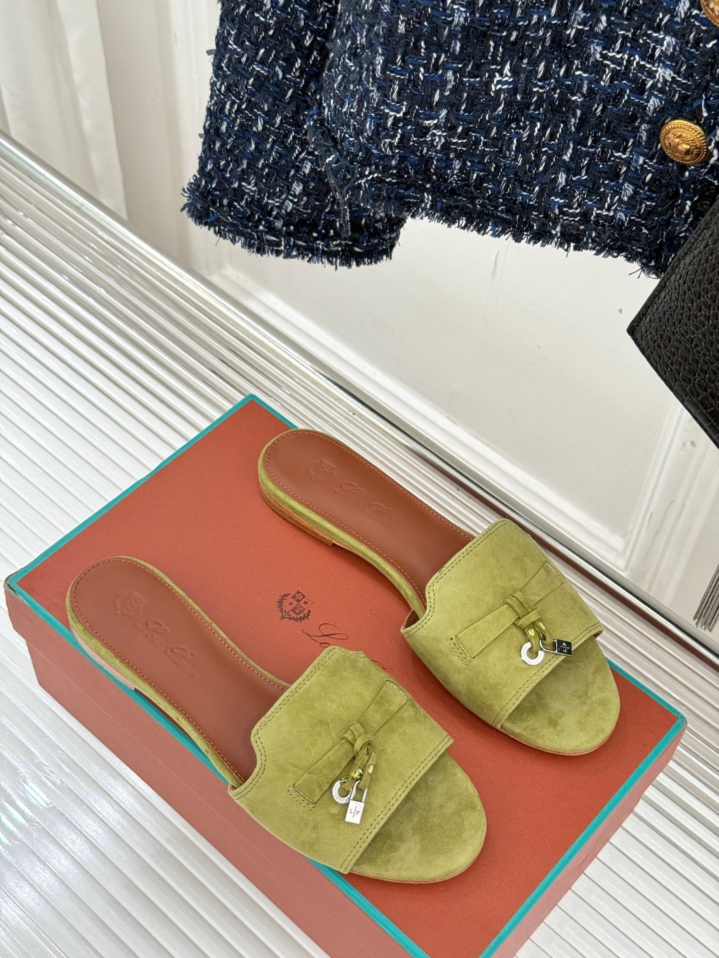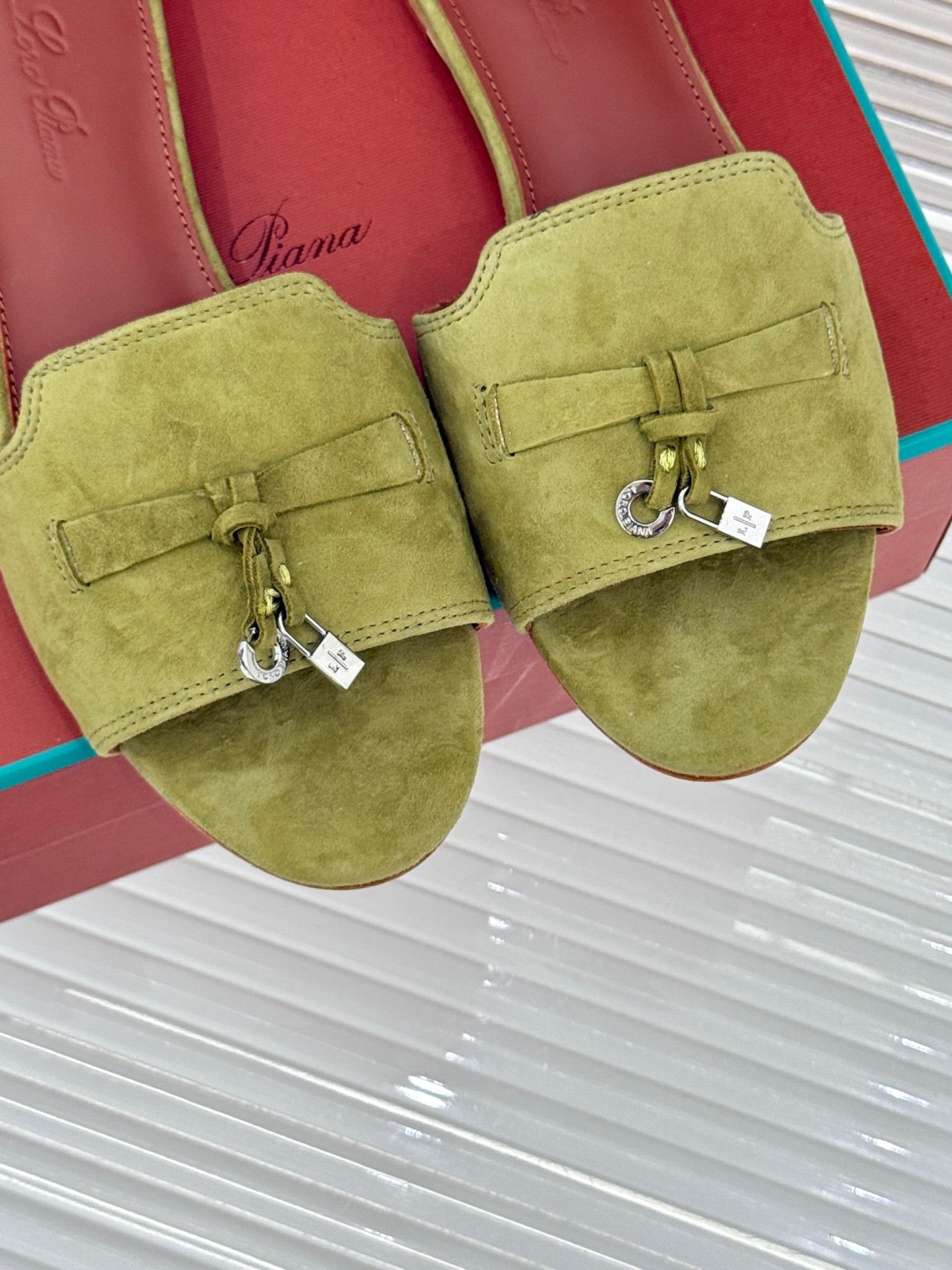 FLAT SANDALS IN MOSS YELLOW SUEDE AND LAMBSKIN