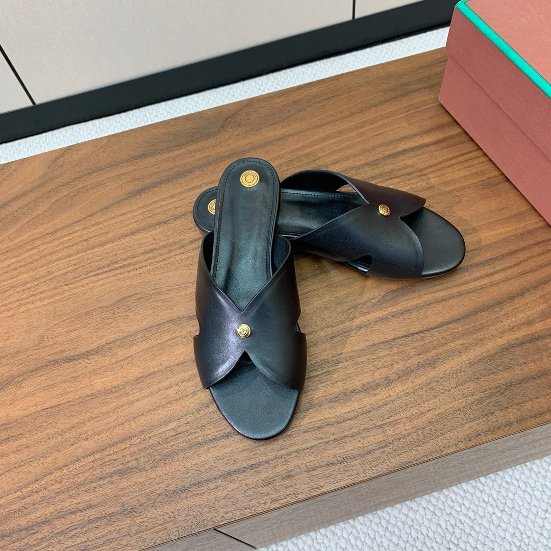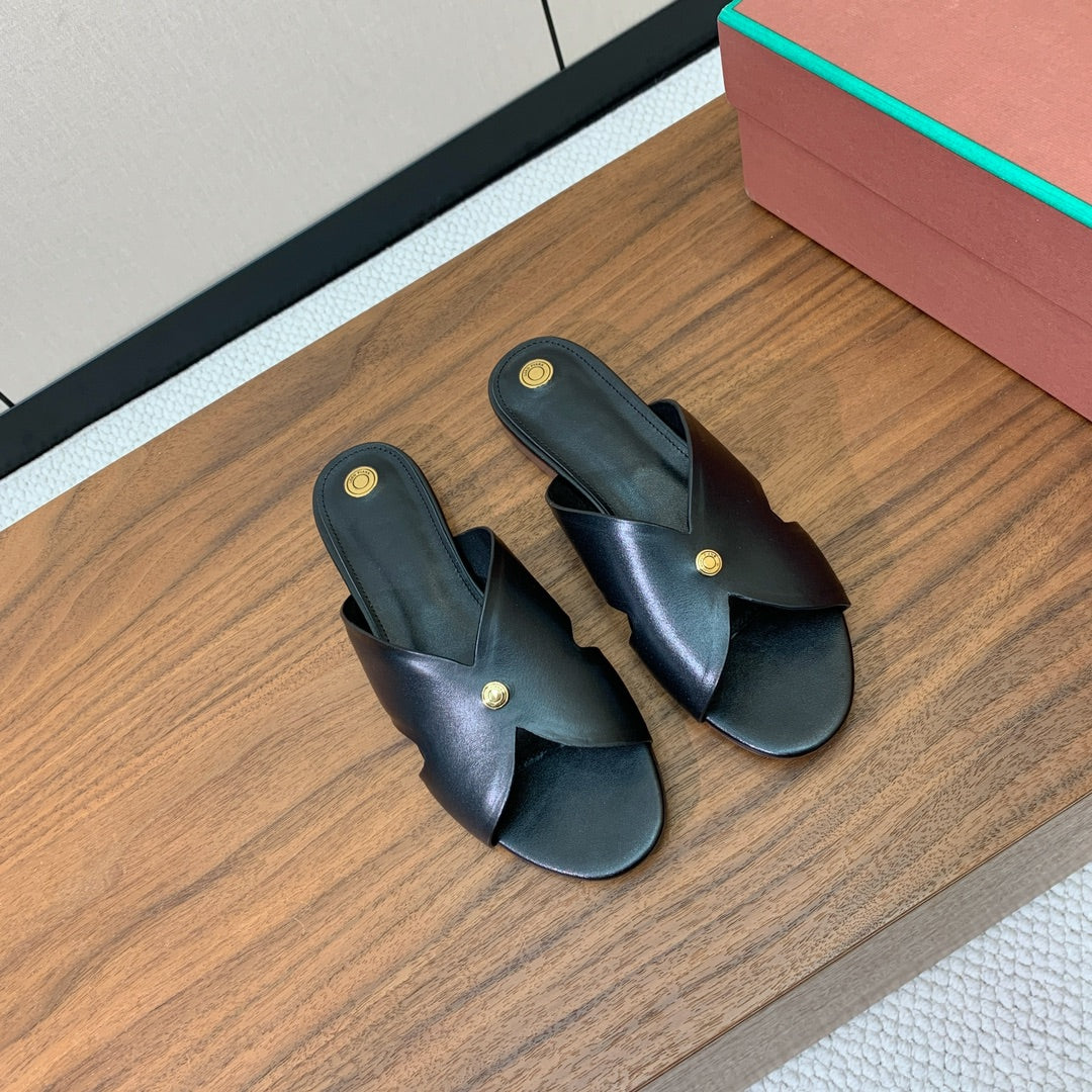 FLAT SLIPPERS IN BLACK CALFSKIN