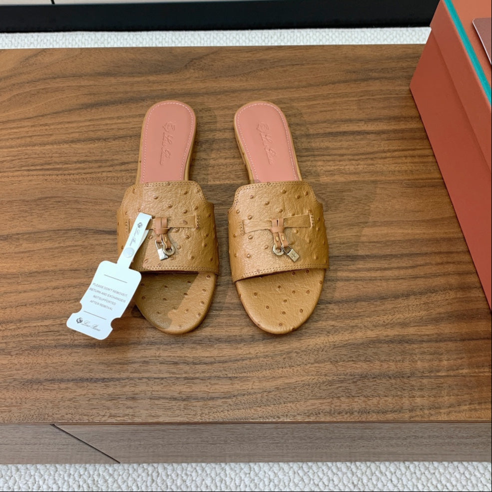 FLAT SLIPPERS IN LIGHT BROWN LAMBSKIN OSTRICH SKIN