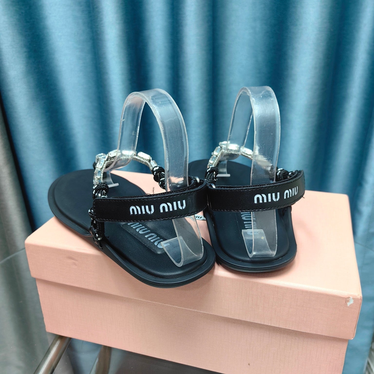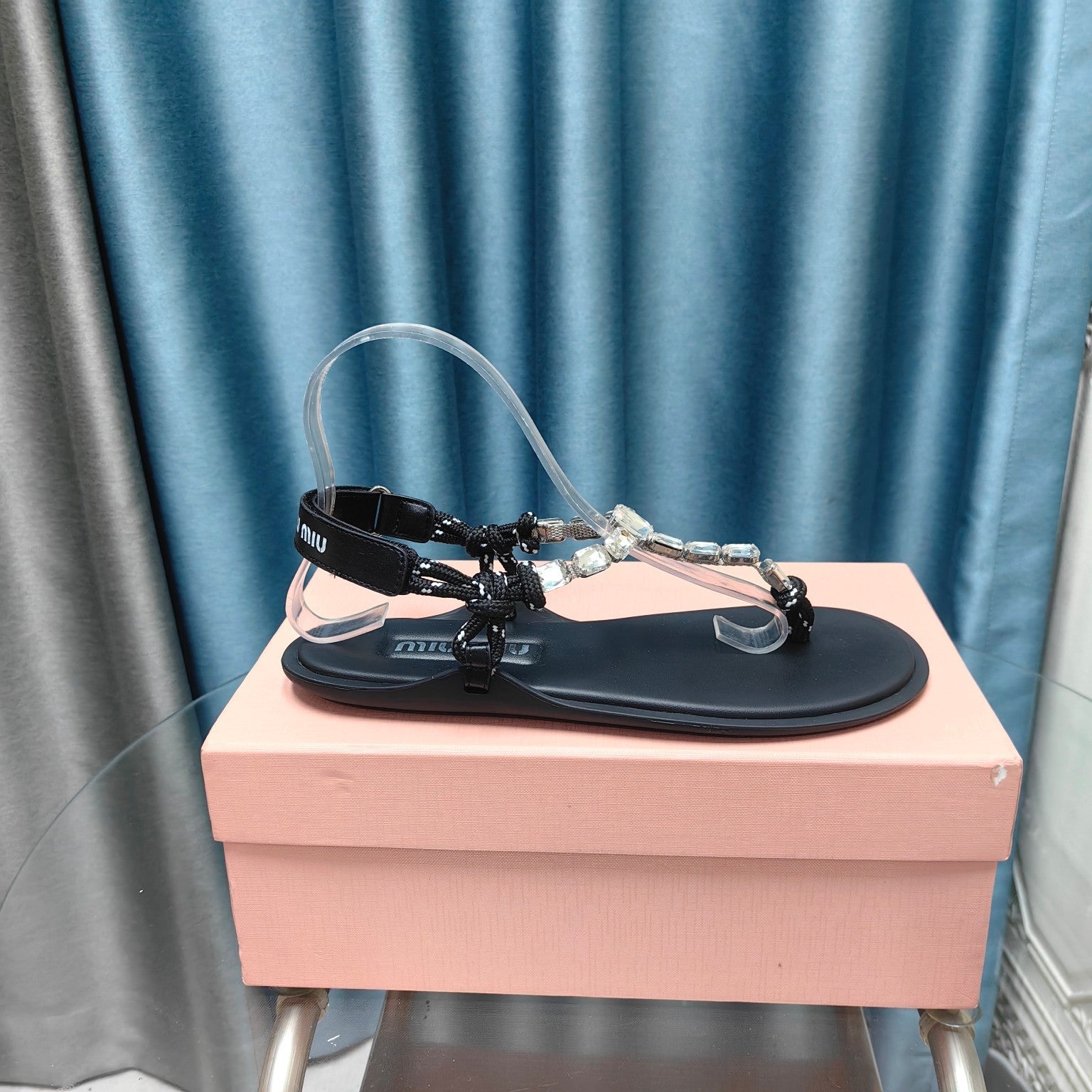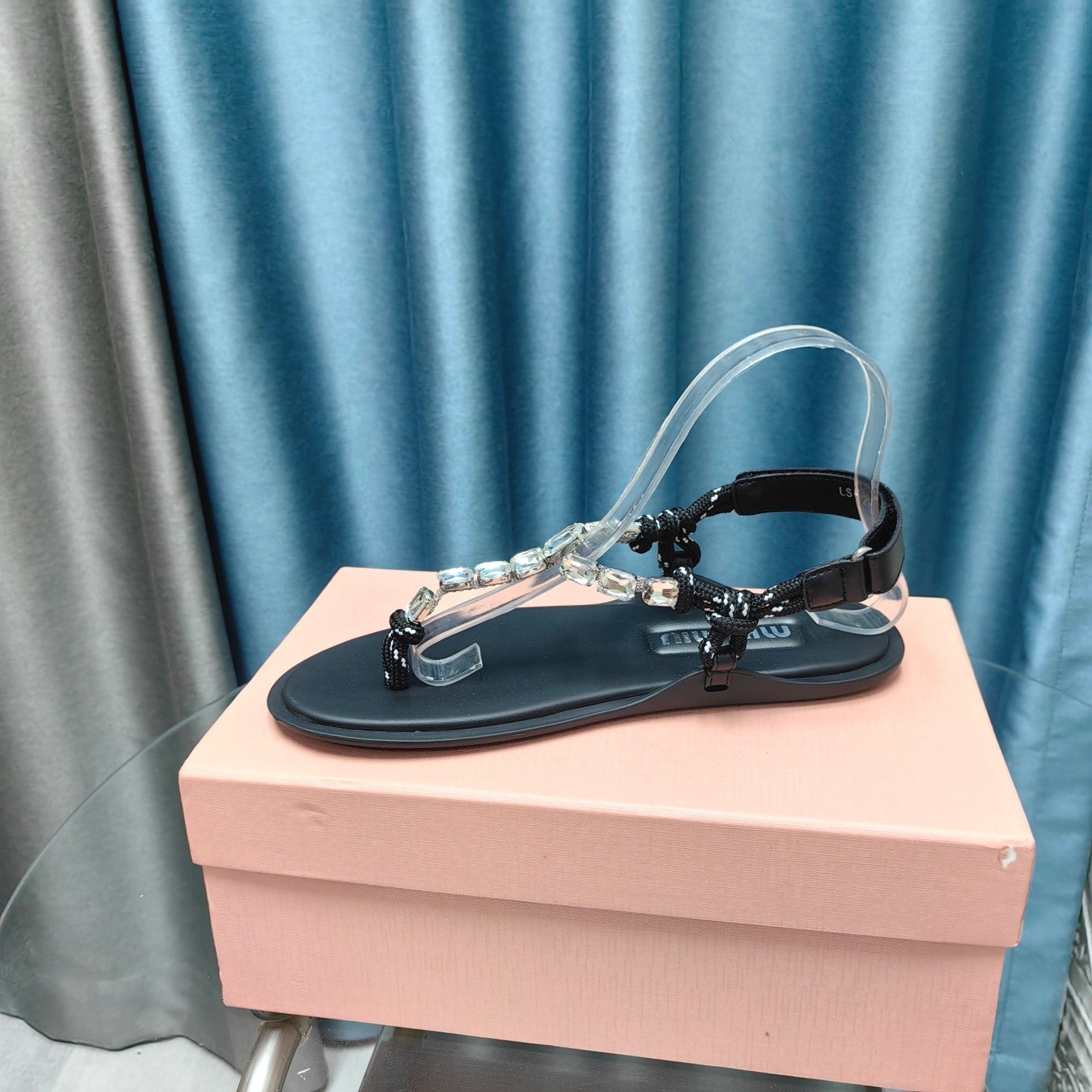 FLIP-FLOPS BLACK COWHIDE WITH CRYSTALS-WHITE