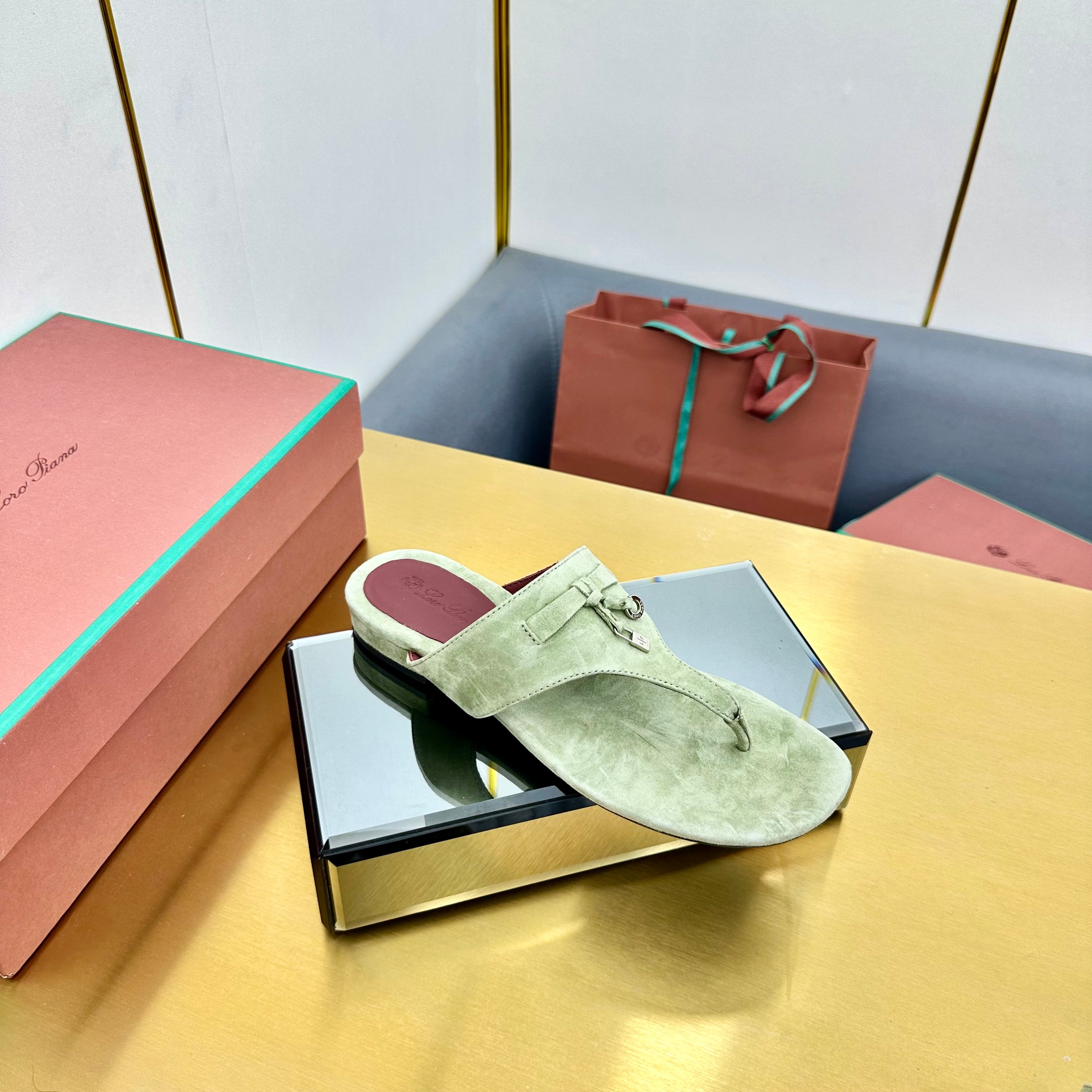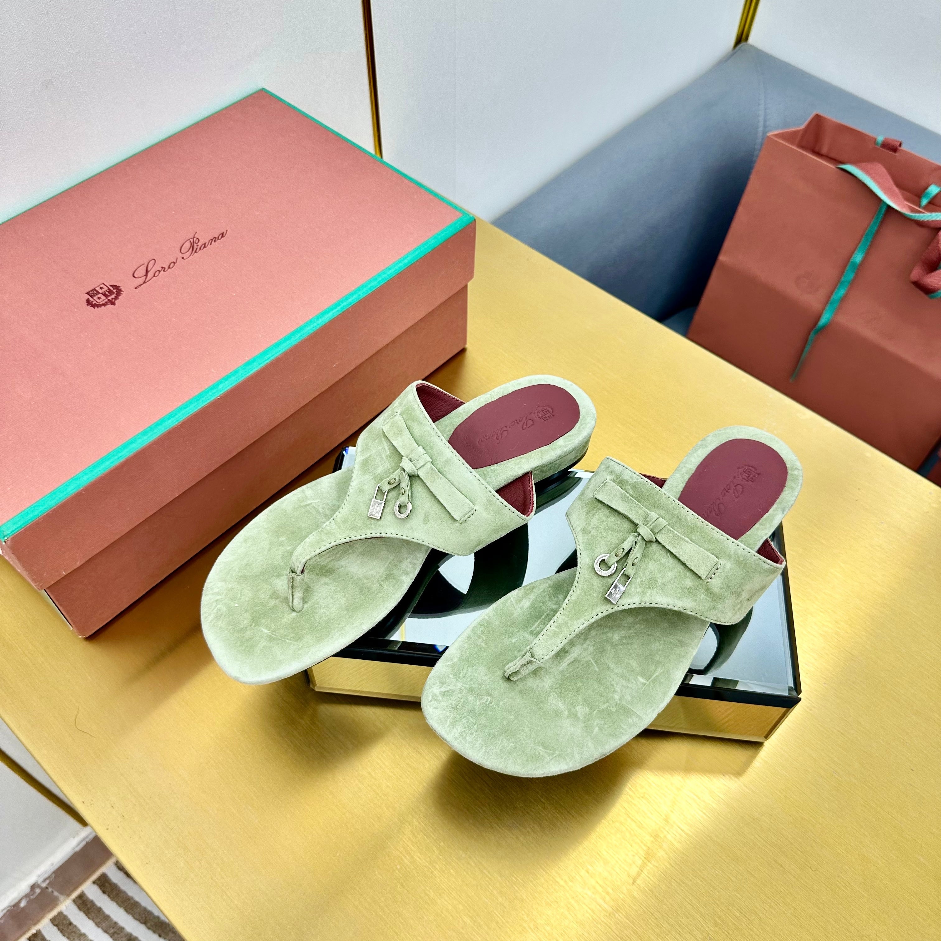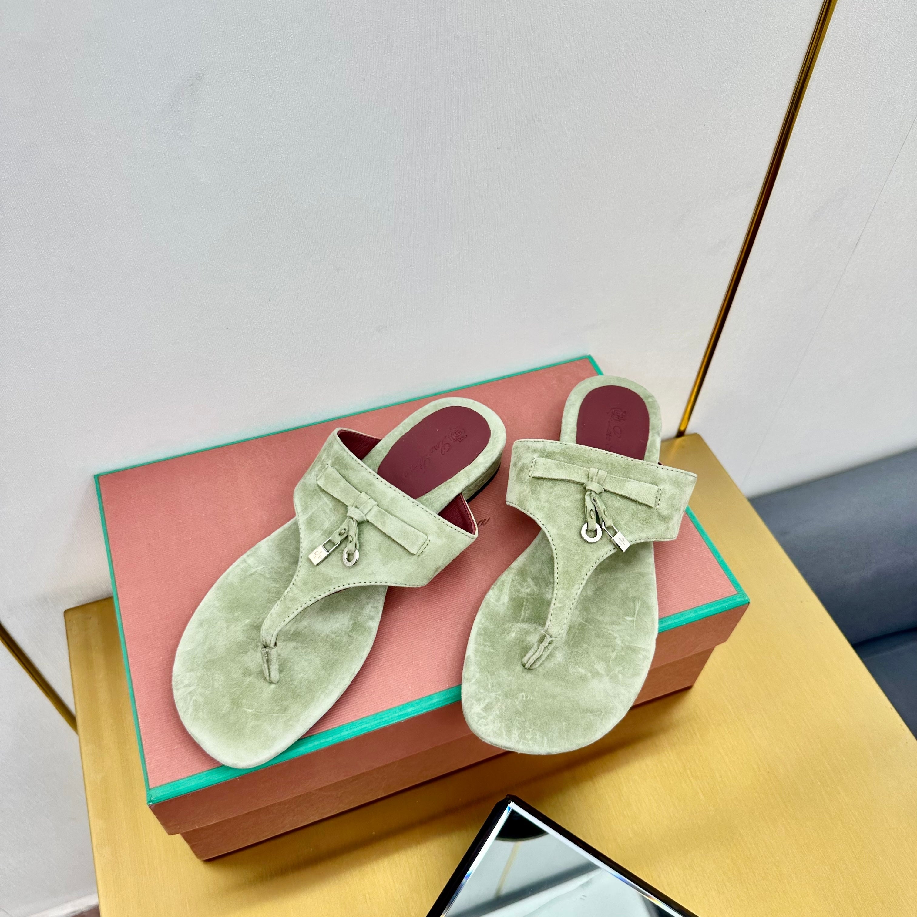 FLIP FLOPS IN GREEN SUEDE AND HARDWARE SILVER