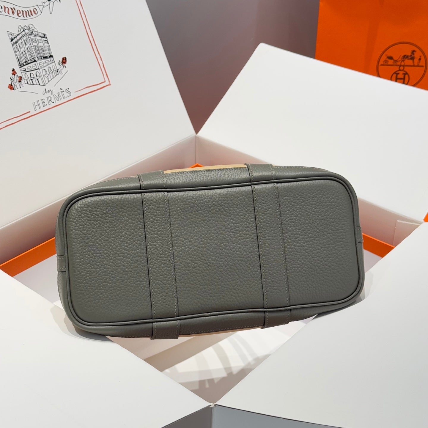 GARDEN PARTY 30CM IN DARK BEIGE TOILETS COTTON CANVAS AND GREY CALFSKIN