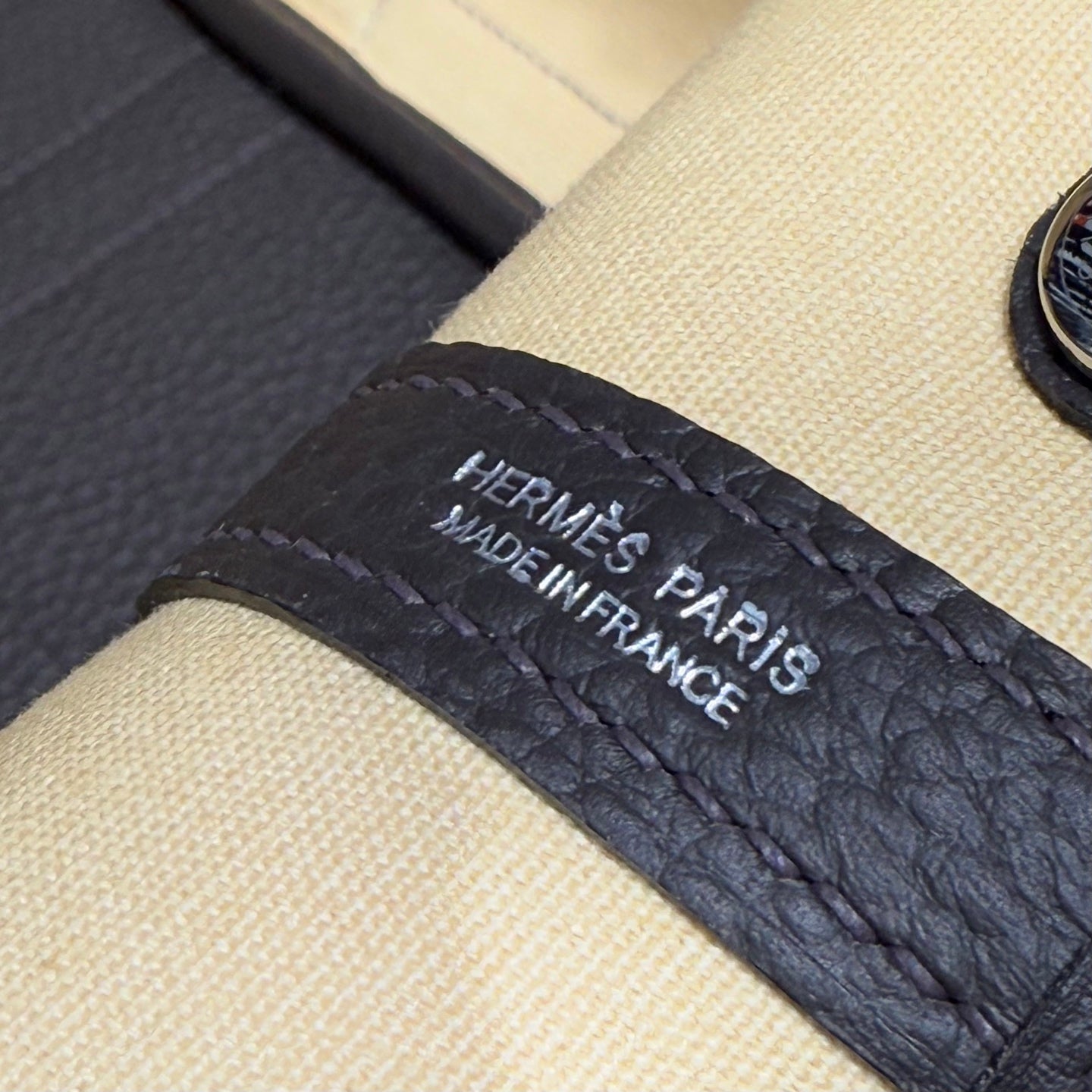 GARDEN PARTY 30CM IN DARK BEIGE TOILETS COTTON CANVAS AND BLACK CALFSKIN