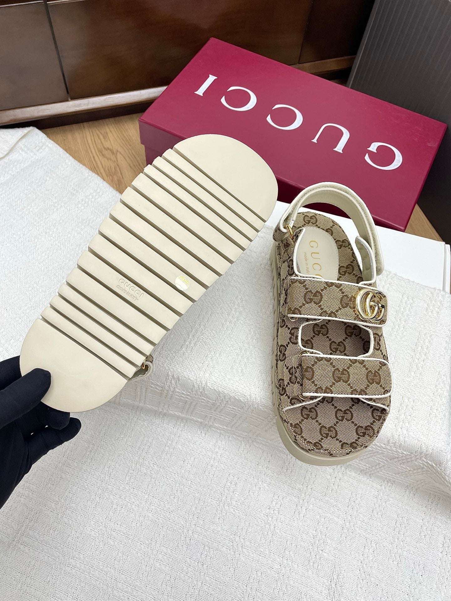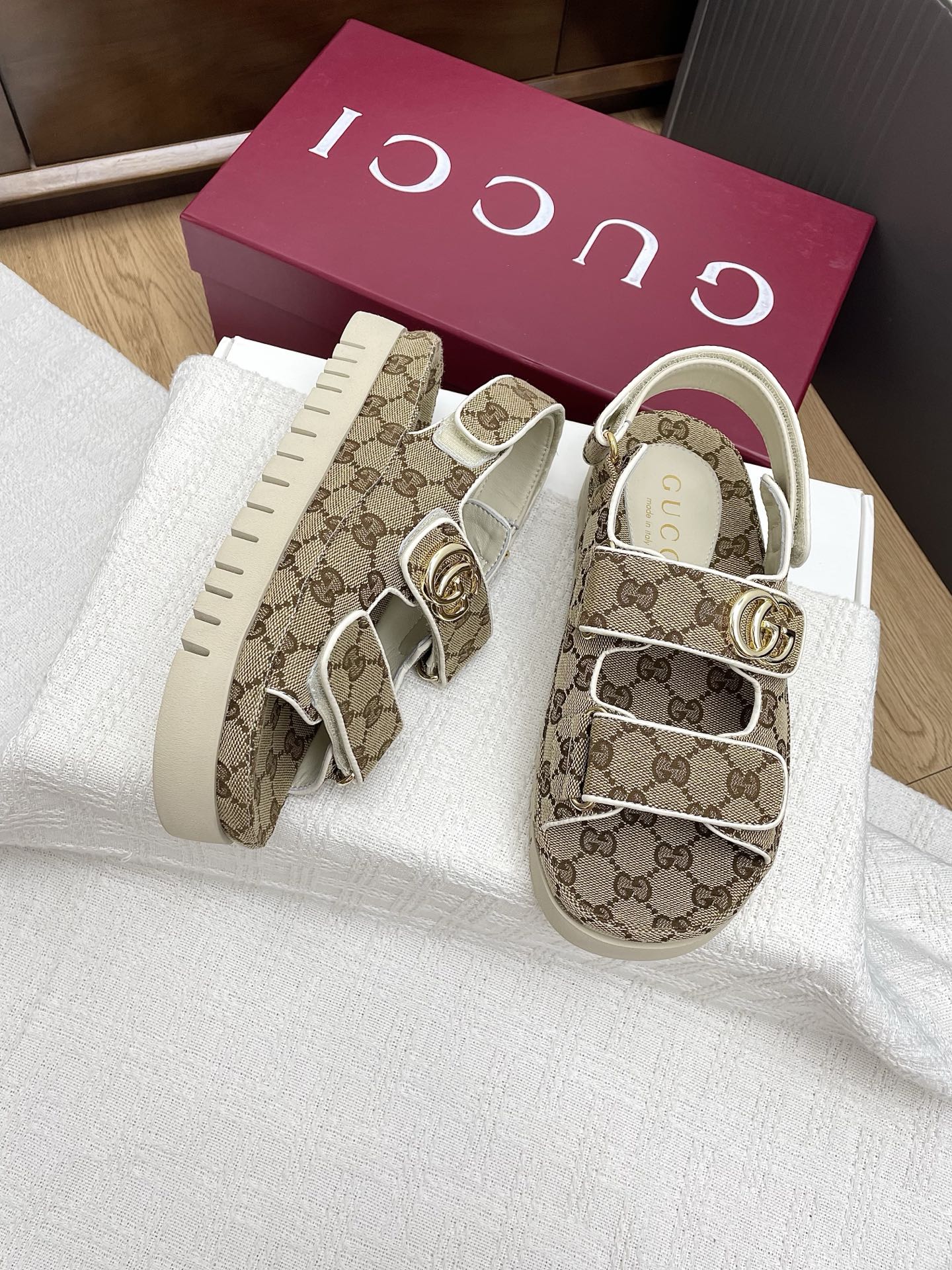 GG CLASSIC SANDALS 25S IN BEIGE FABRIC WITH GOLD HARDWARE