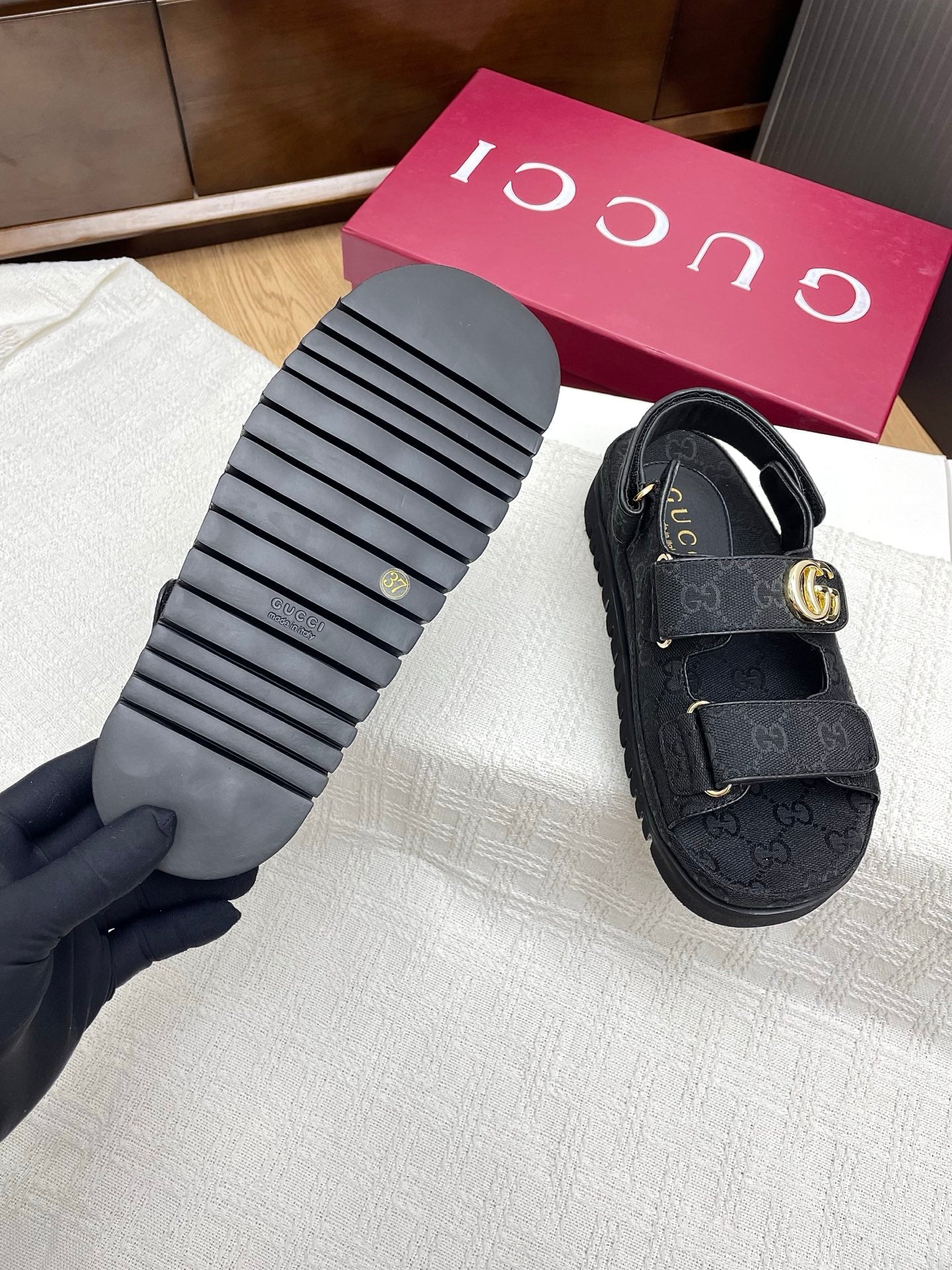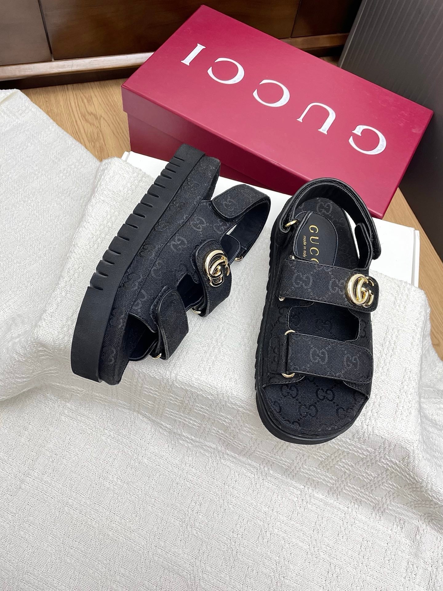 GG CLASSIC SANDALS 25S IN BLACK FABRIC WITH GOLD HARDWARE