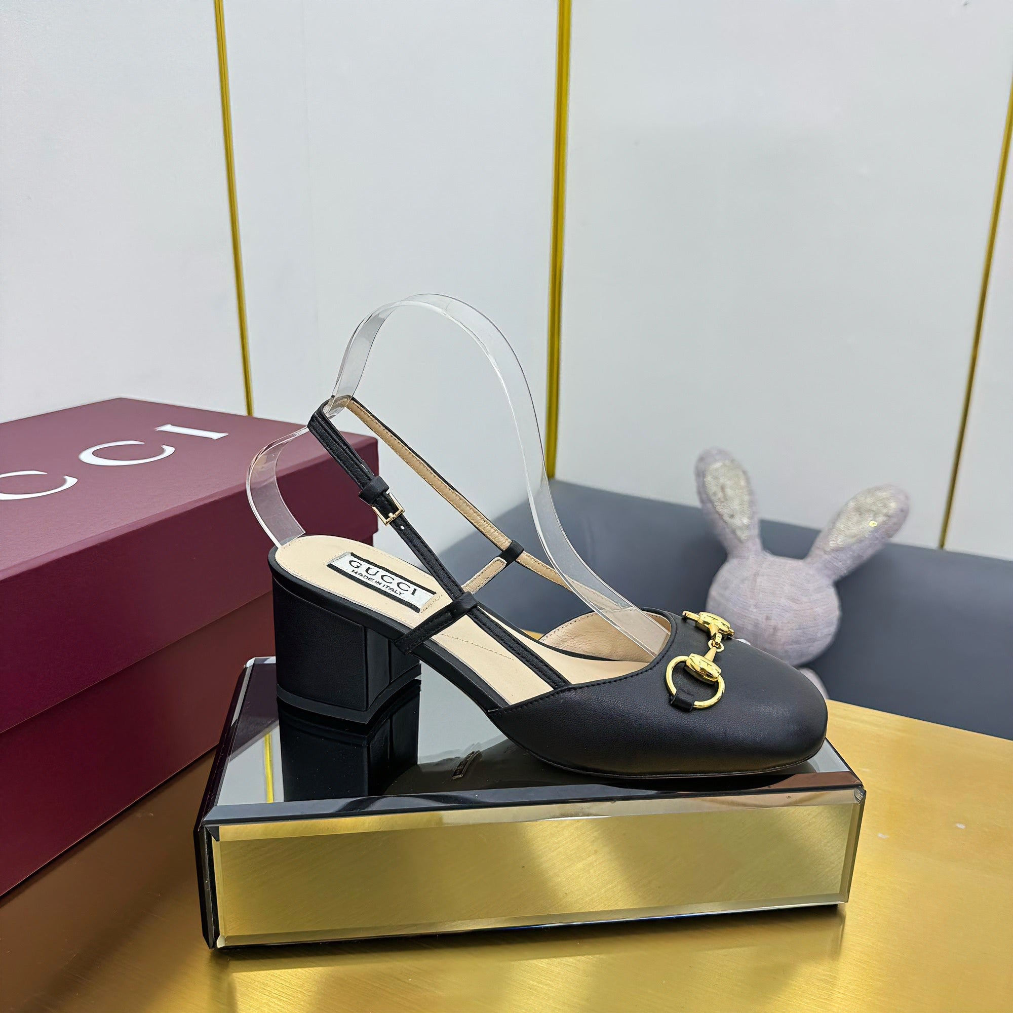 GG HIGH SLINGBACK 65 IN BLACK LAMBSKIN WITH GOLD HARDWARE