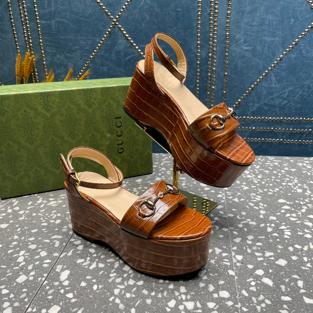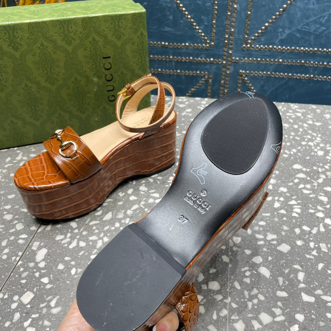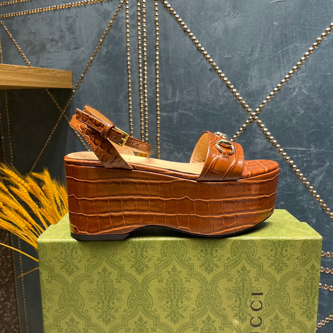 GG  HORSEBIT FLATFORM SANDAL CARAMEL CALFSKIN
