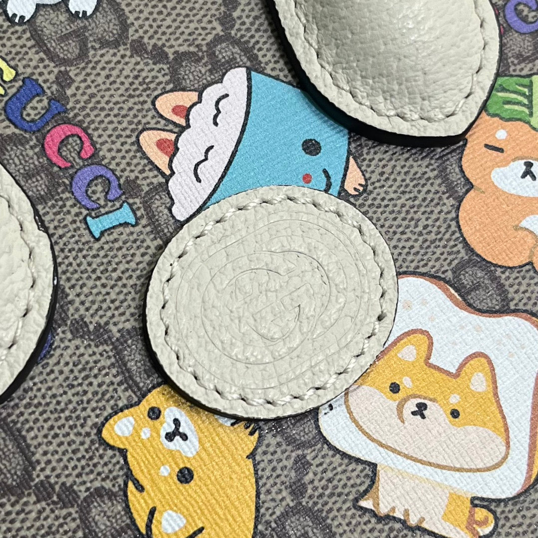 GG MINI 20 ANIMAL PRINTED TOTE IN BEIGE CANVAS AND WHITE CALFSKIN