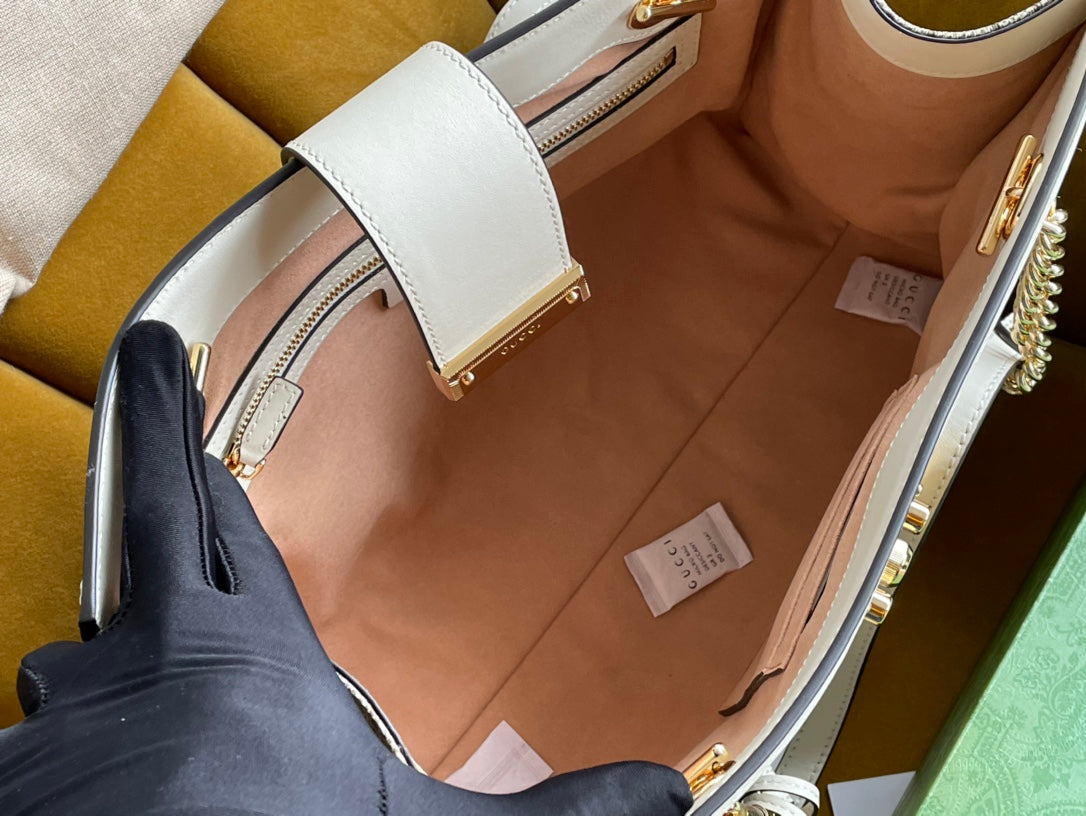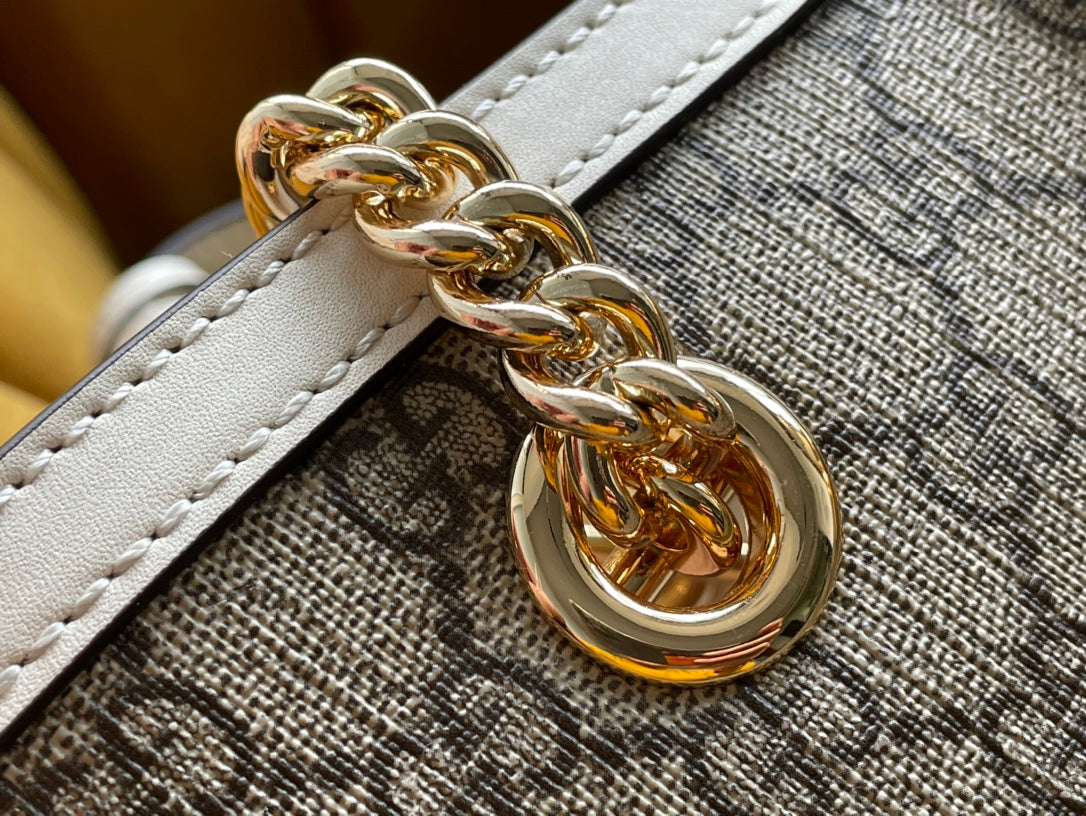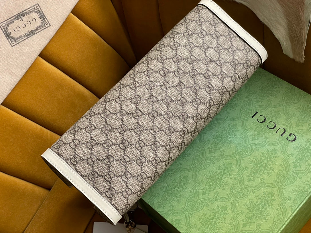 GG PADLOCK LARGE 35 SHOULDER BAG BEIGE CANVAS AND WHITE CALFSKIN