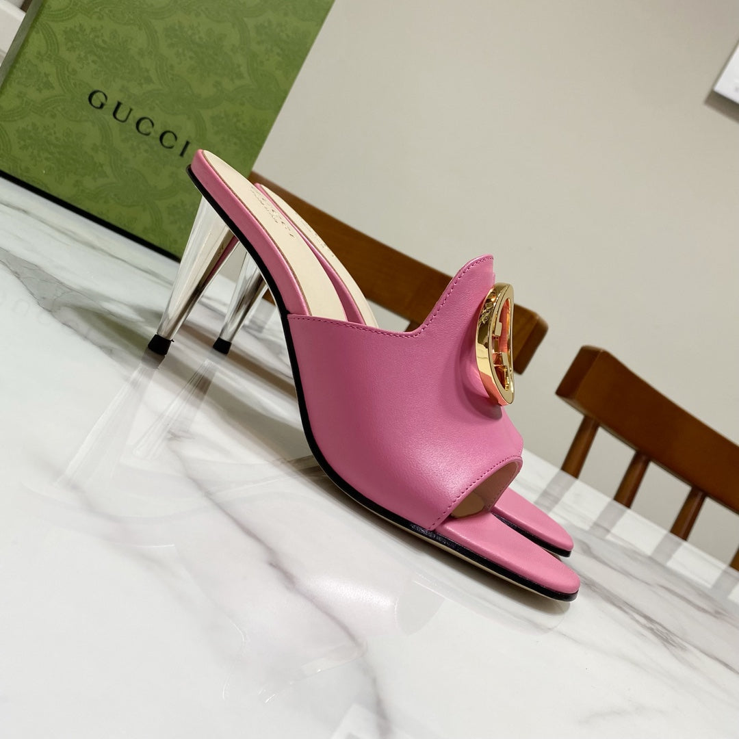 GG WEDGE SLIDES 110 IN BLUE FABRIC WITH GOLD HARDWARE