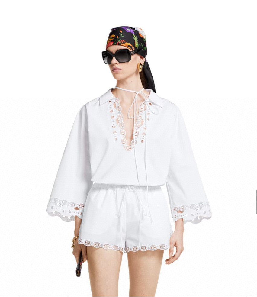 GG WHITE SHIRT COTTON WITH EYELET EMBROIDERY WITH TIE-NECK DETAIL