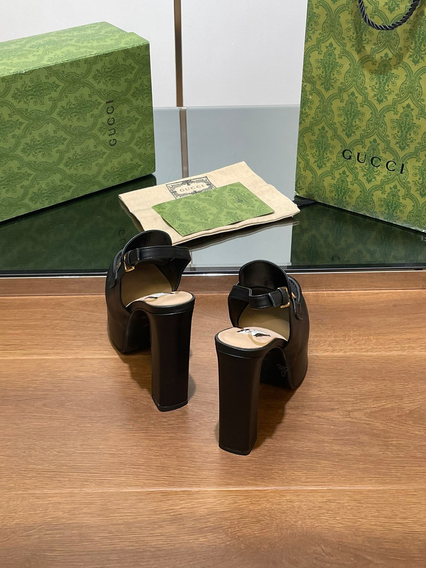 GG WOMEN'S HORSEBIT PLATFORM LOAFER SLINGBACK IN BLACK CALFSKIN