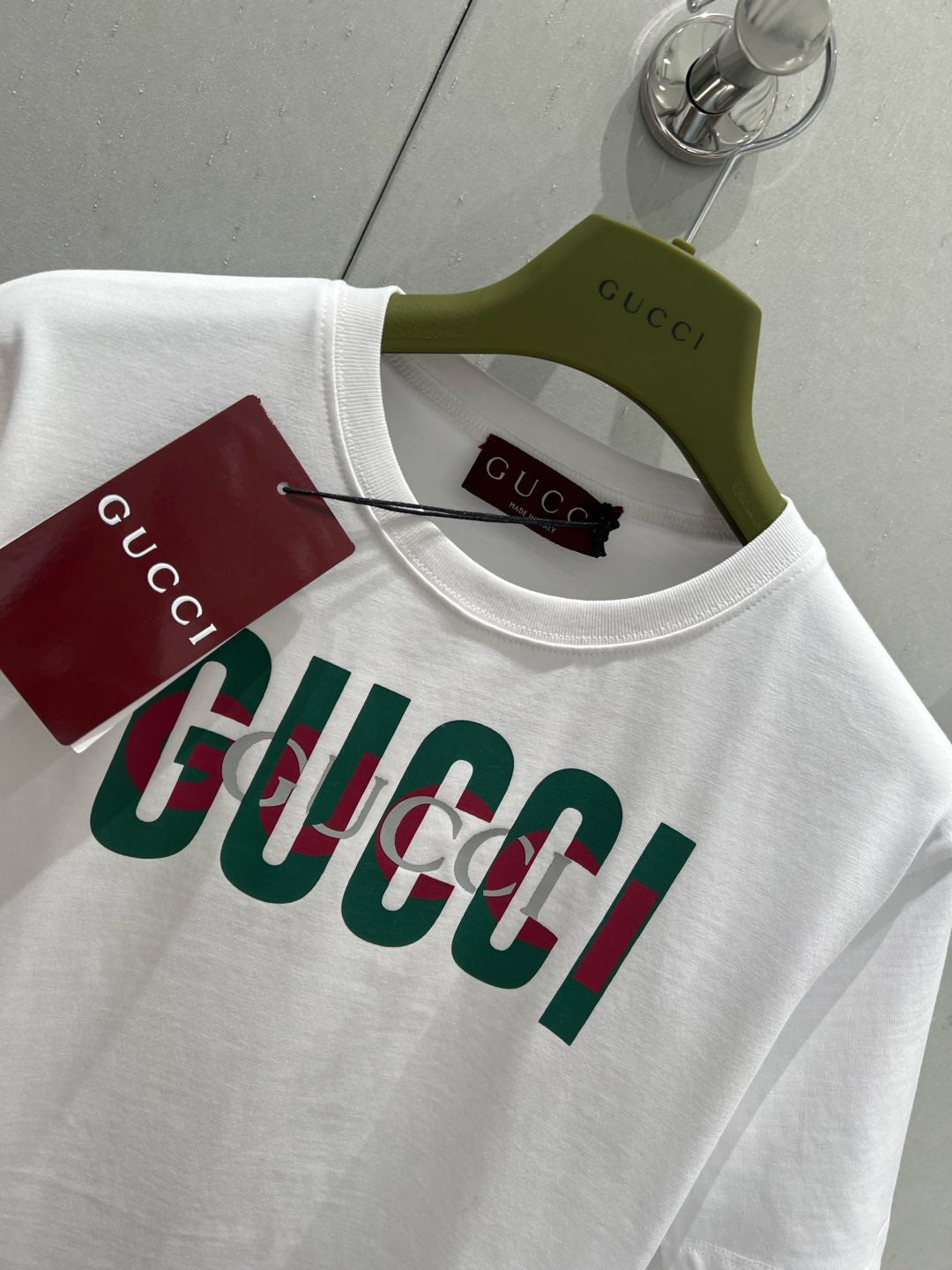 Gucci 2025 Print Short Sleeve T-shirt White Green Red Cotton