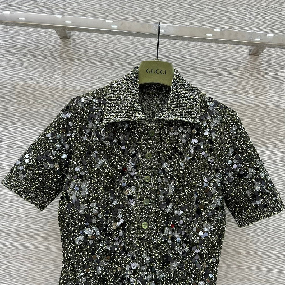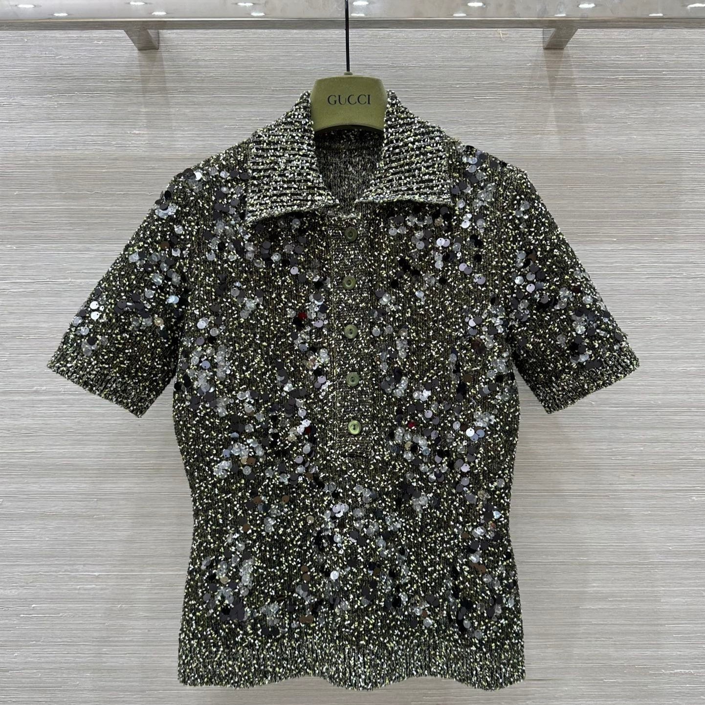Gucci Knitted Polo Short-sleeved Top Green Wool
