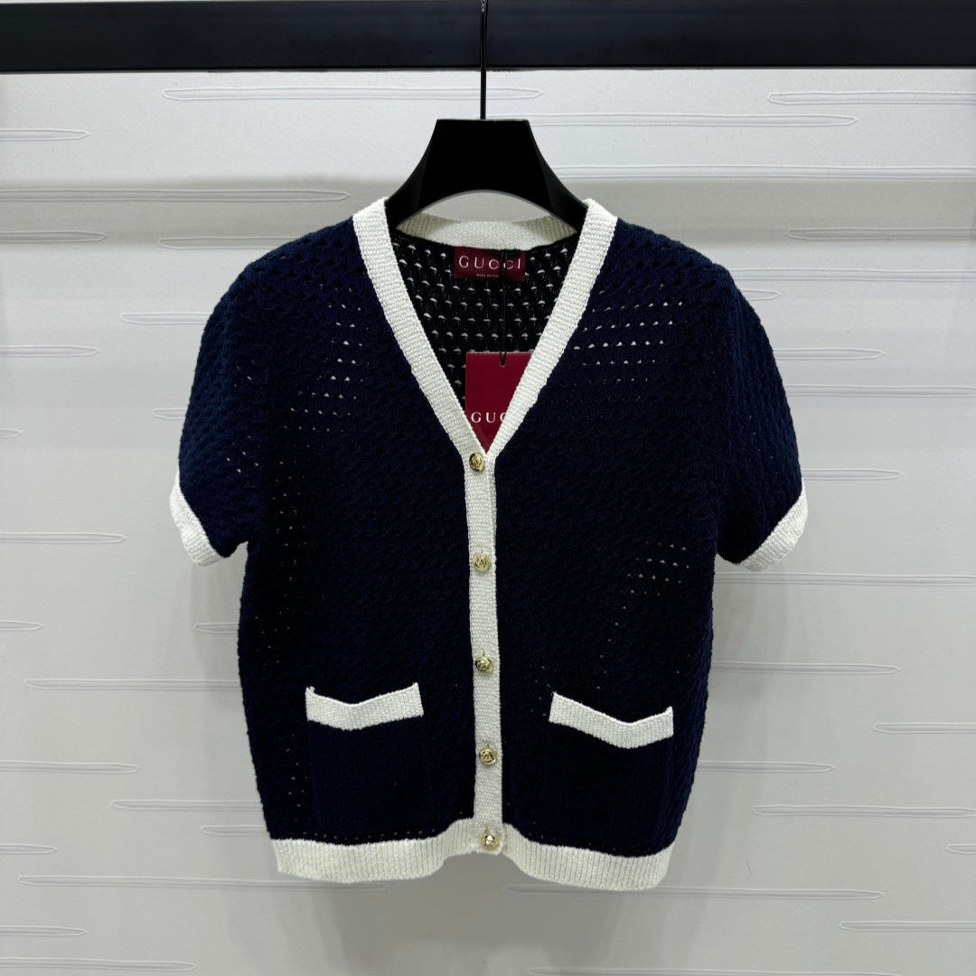 GUCCI SHORT-SLEEVE KNIT CARDIGAN 273214