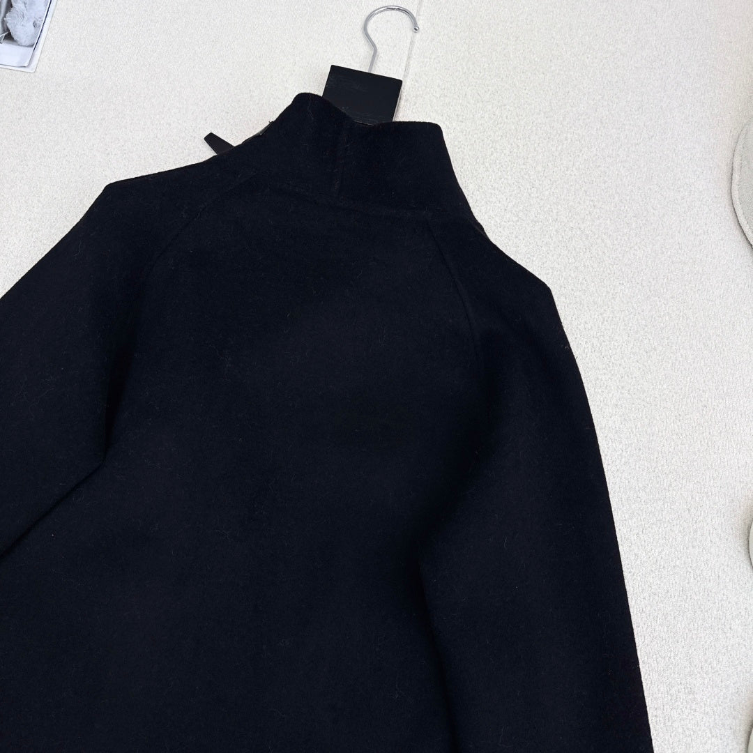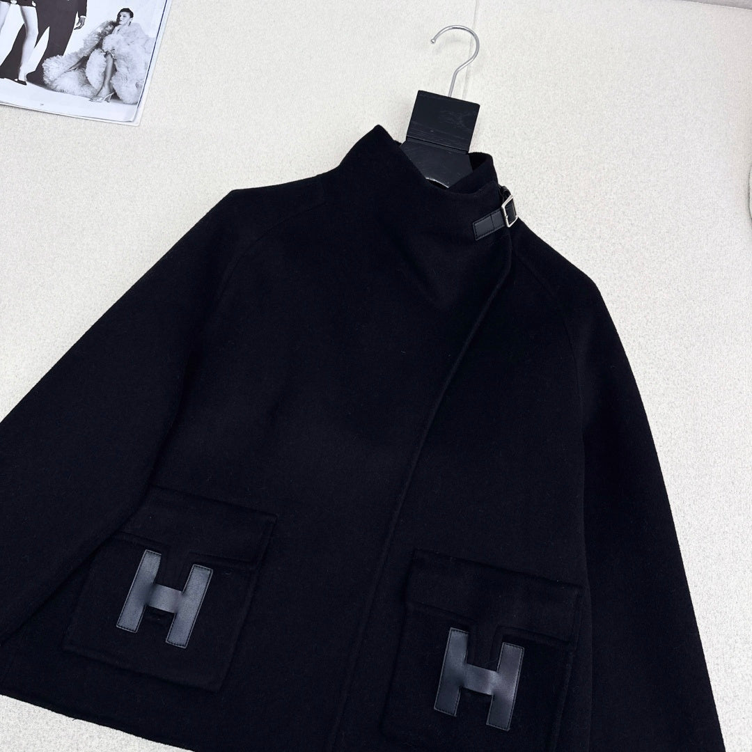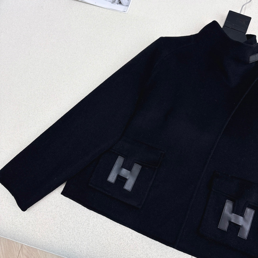 HERMES 25S DOUBLE-FACED WOOL STAND-COLLAR COAT 187