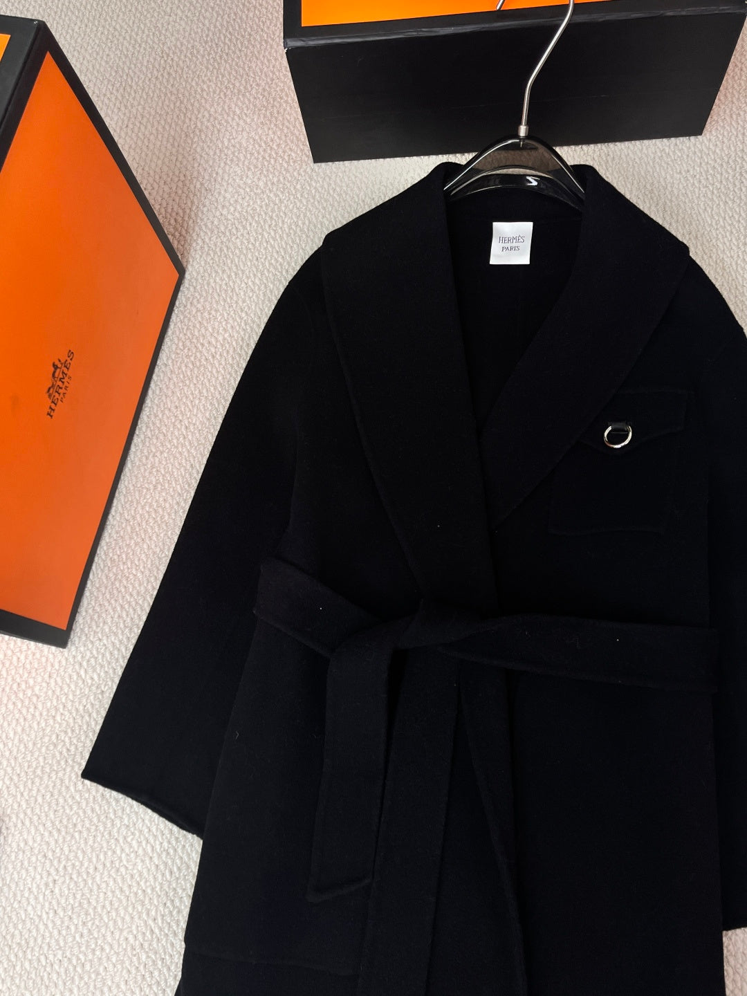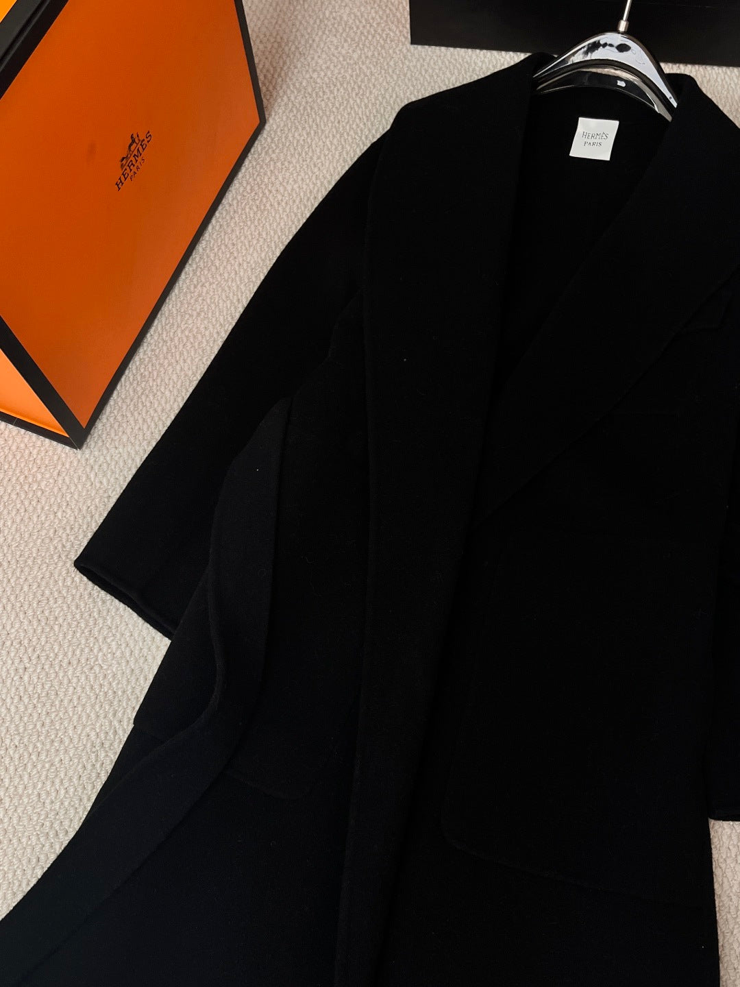 HERMES 25S LAPEL-COLLAR CASHMERE COAT 210
