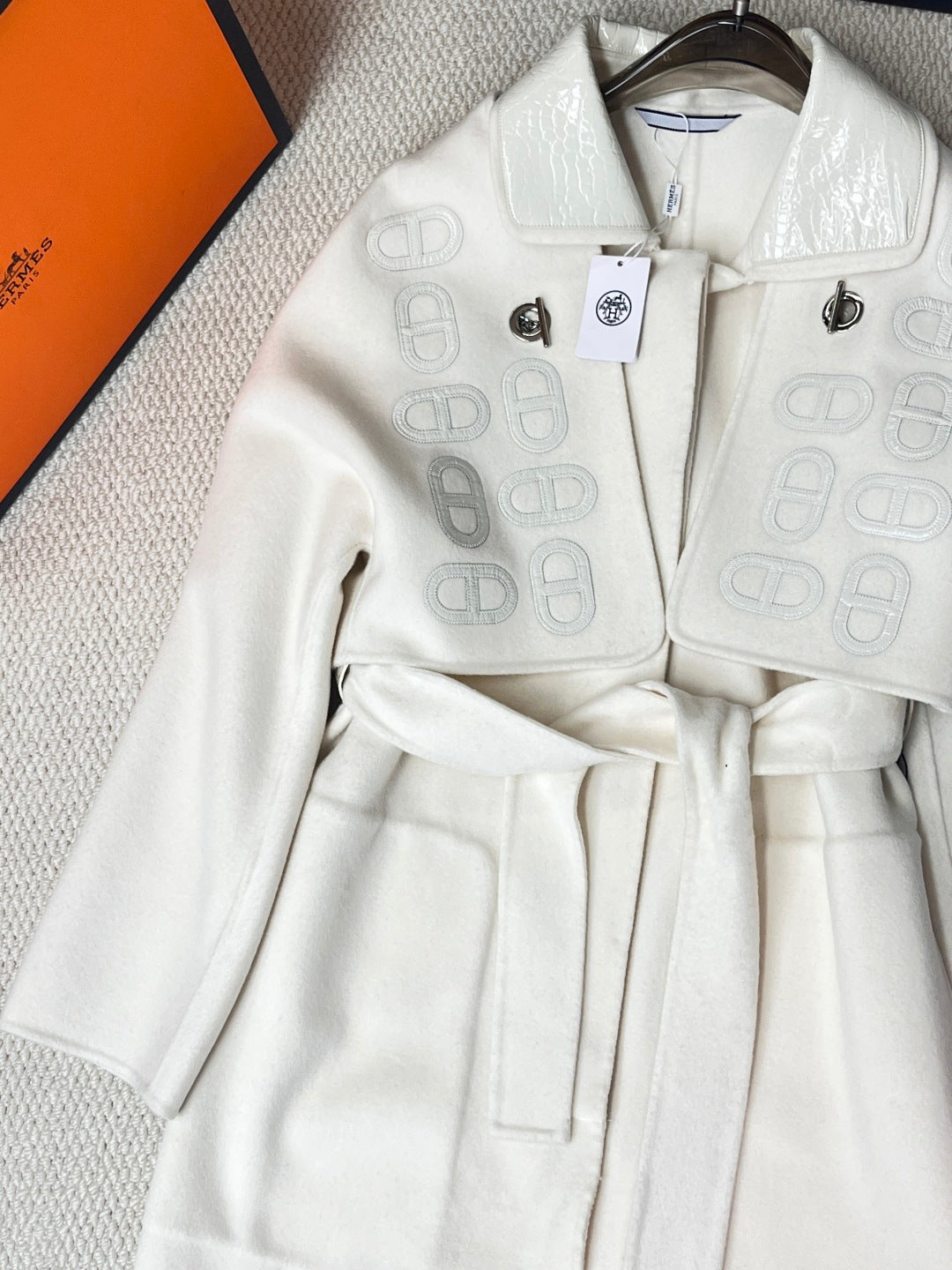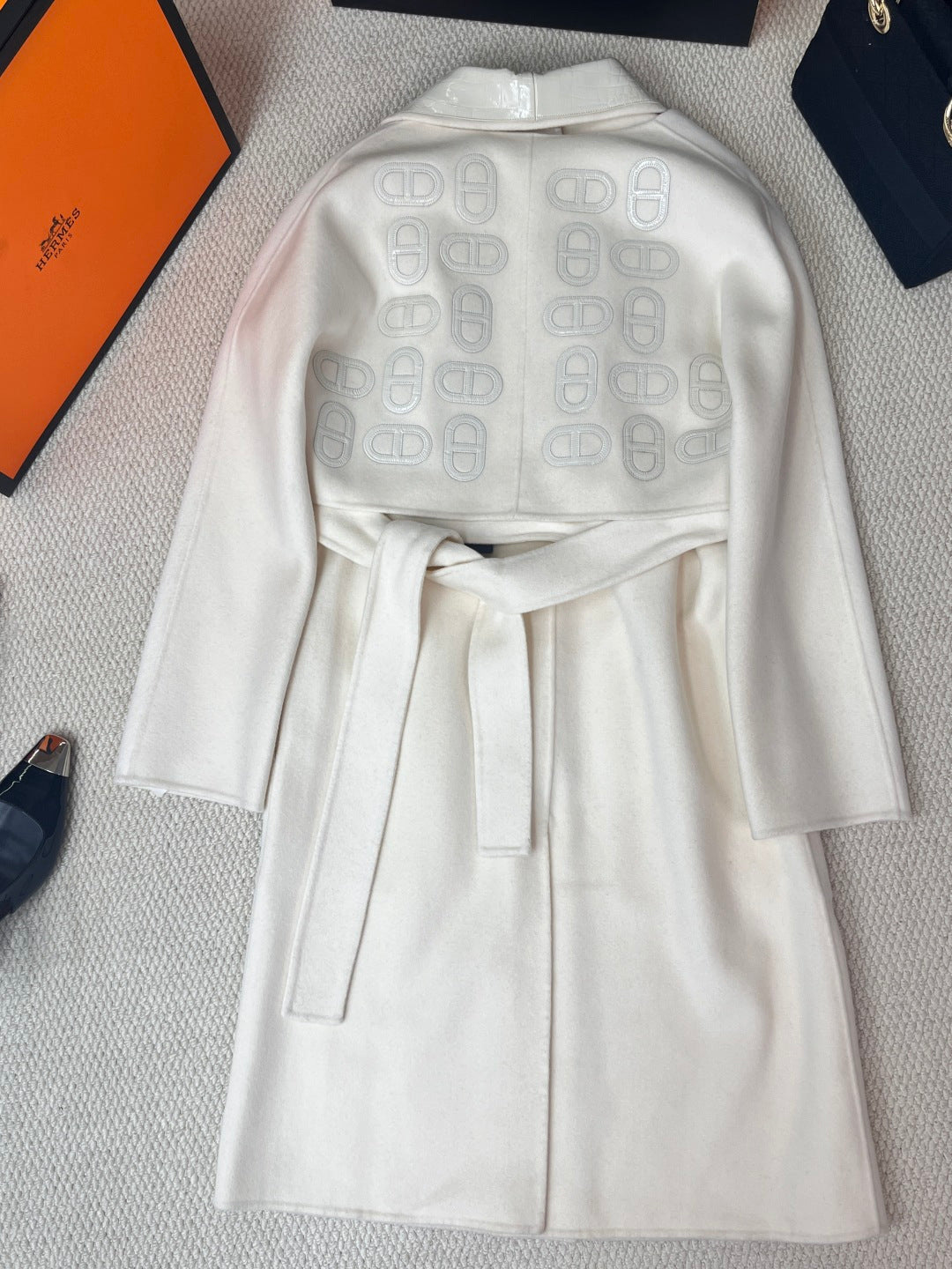 HERMES 25S LONG CASHMERE PIG-NOSE COAT 206