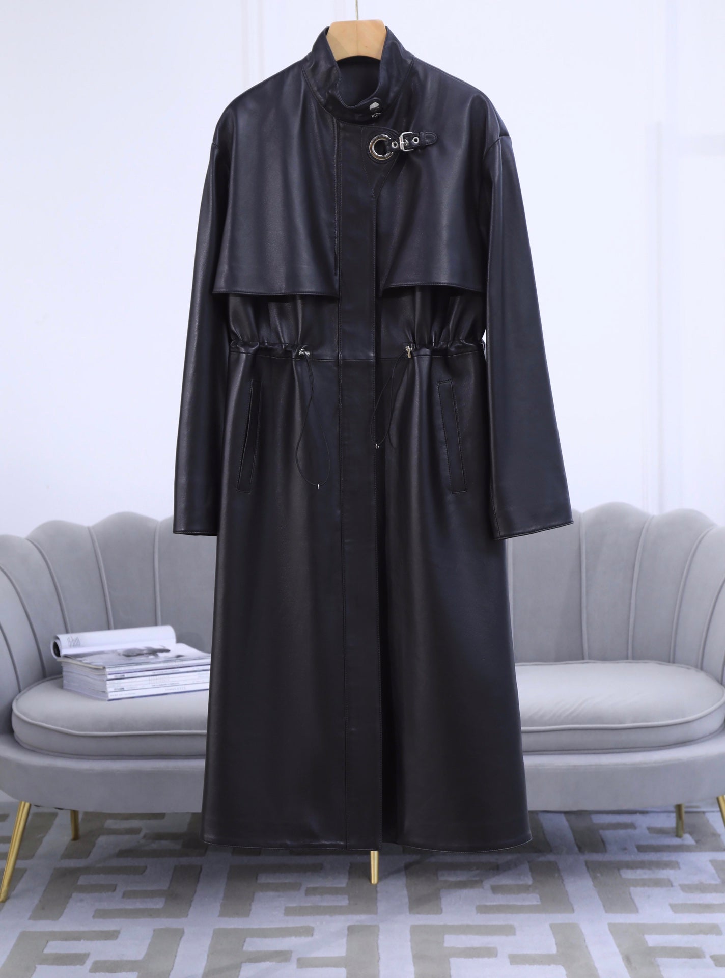 HERMES 25S LONG LEATHER JACKET WITH DRAWSTRING WAIST 170