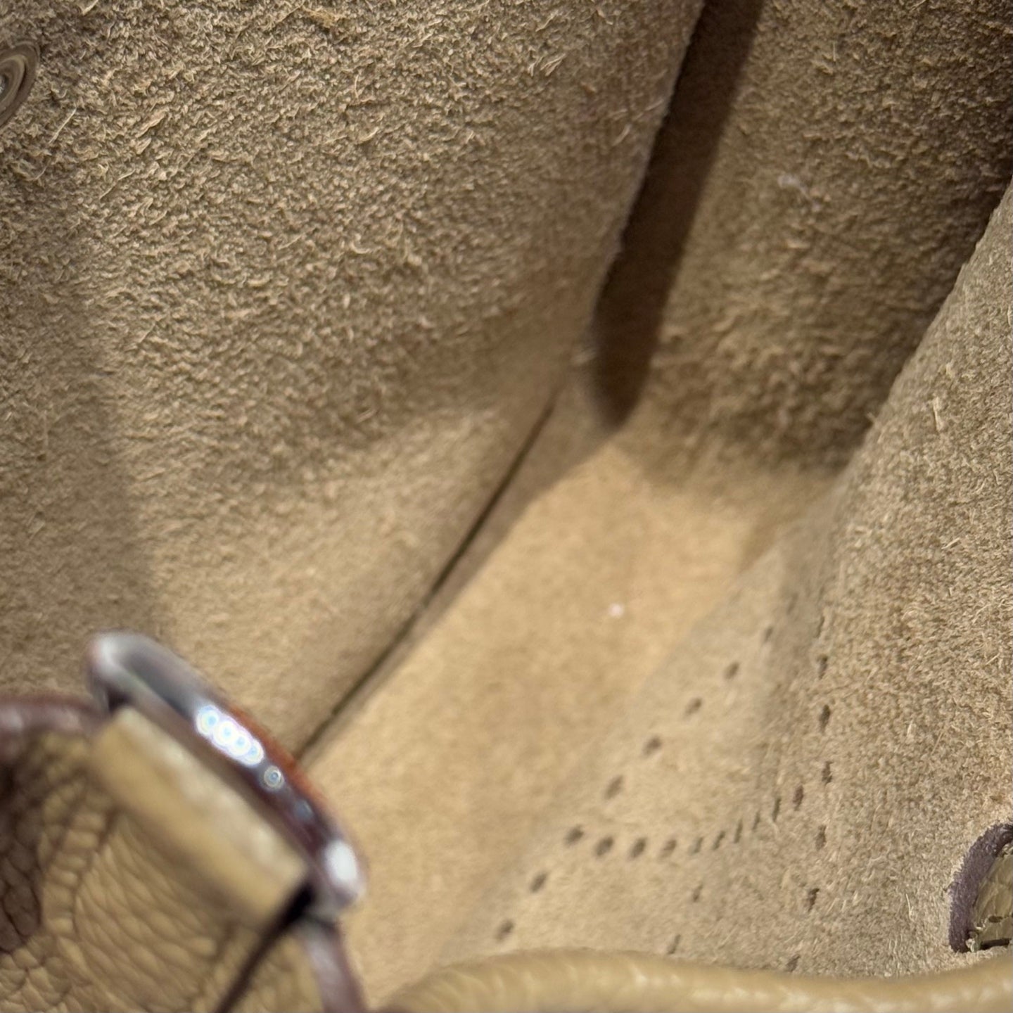 HERMES 25S MINI EVELYNE 18 IN BEIGE MARFA PATTERNED STRAP CALFSKIN SILVER HARDWARE