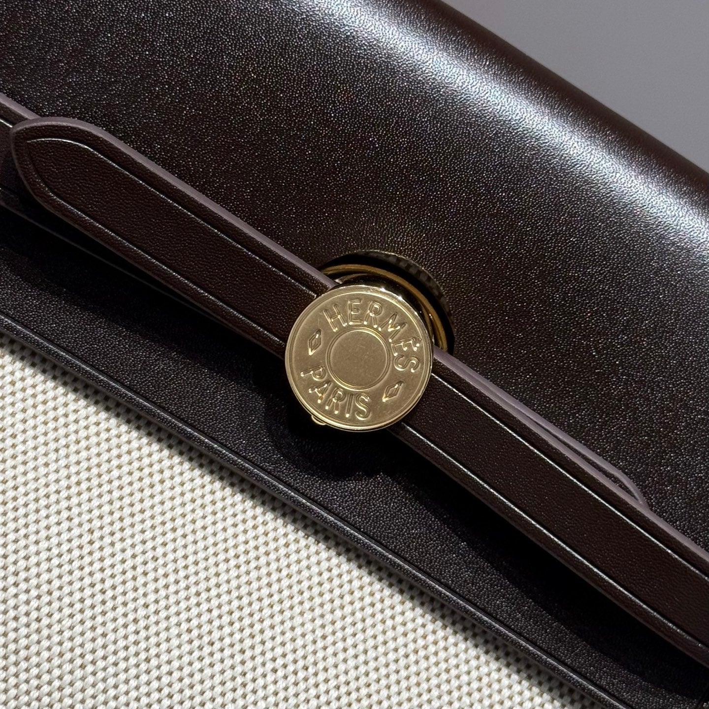 HERMES 25S MINI HERBAG 20 IN OFF WHITE AND BLACK CANVAS GOLD HARDWARE