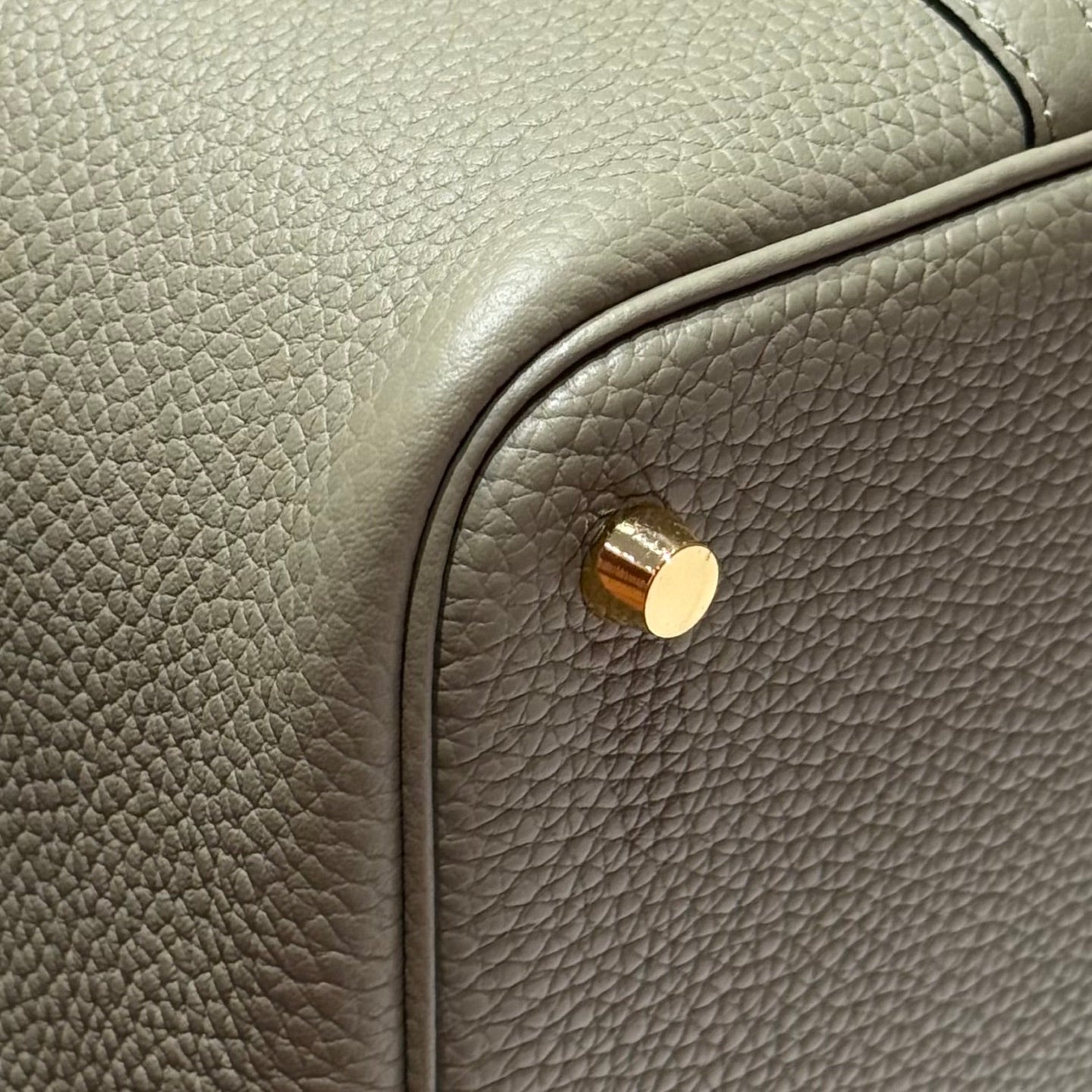 HERMES 25S PICOTIN LOCK 22 IN CROMWELL GRAY CALFSKIN GOLD HARDWARE