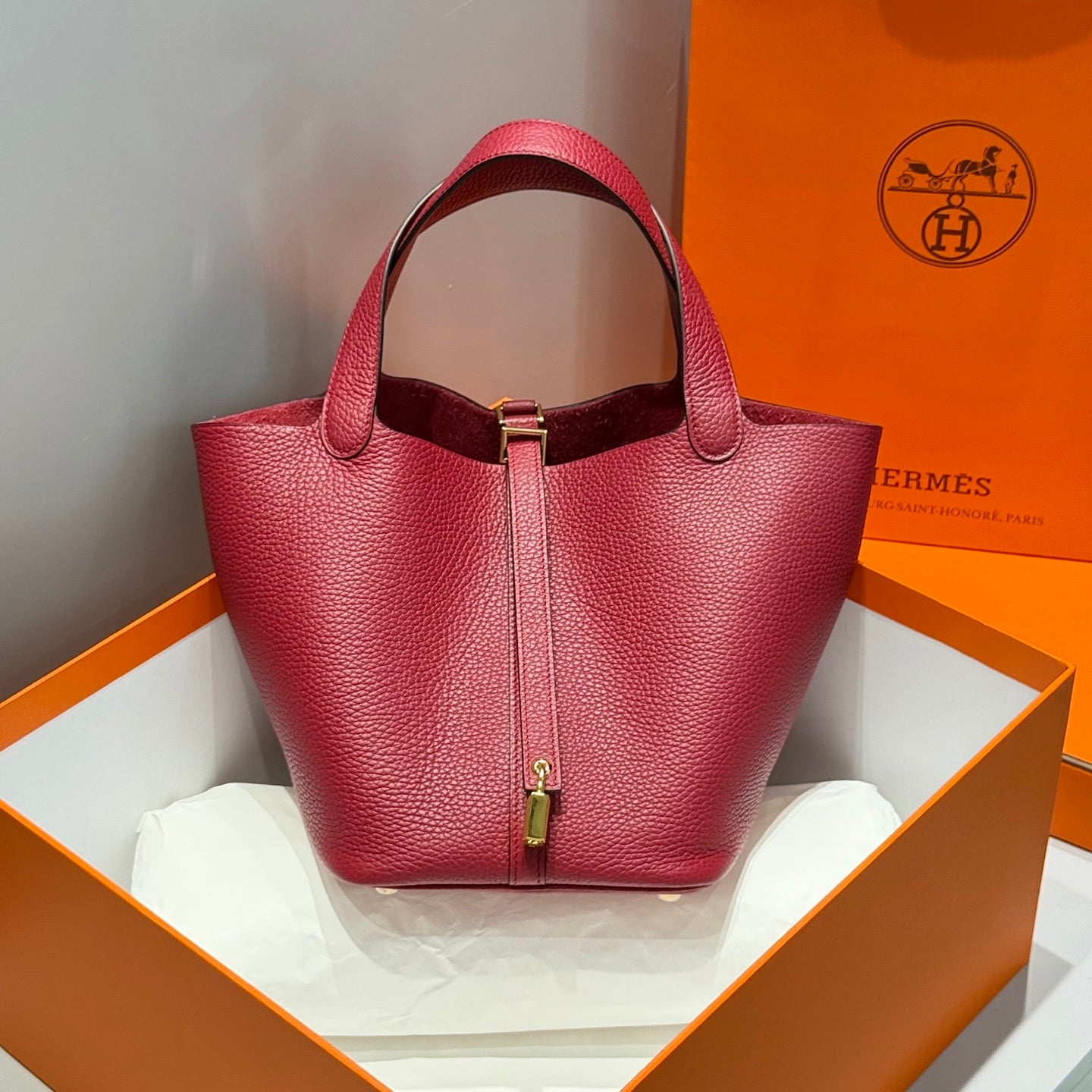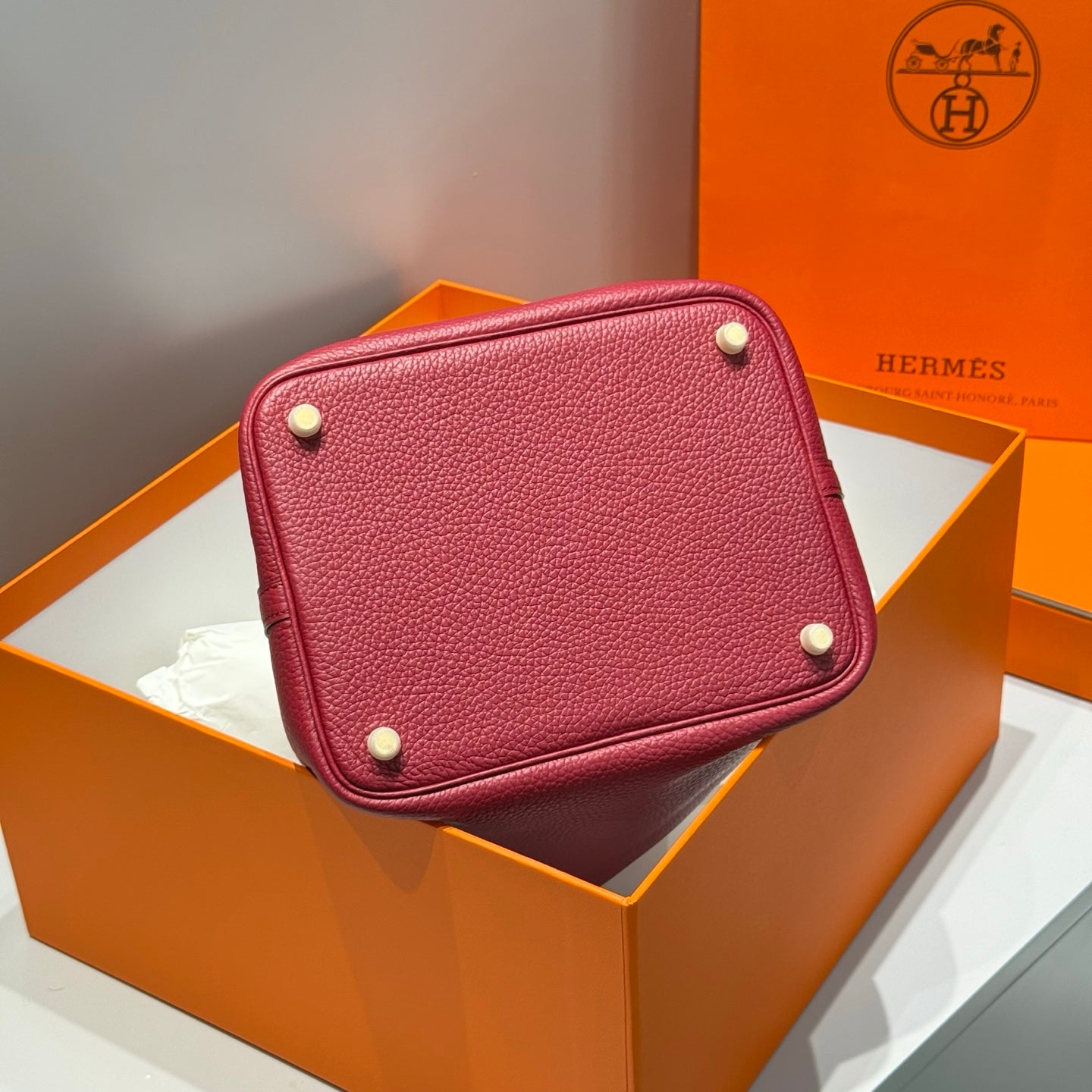 HERMES 25S PICOTIN LOCK 22 IN ROSSO ANCORA RED CALFSKIN GOLD HARDWARE