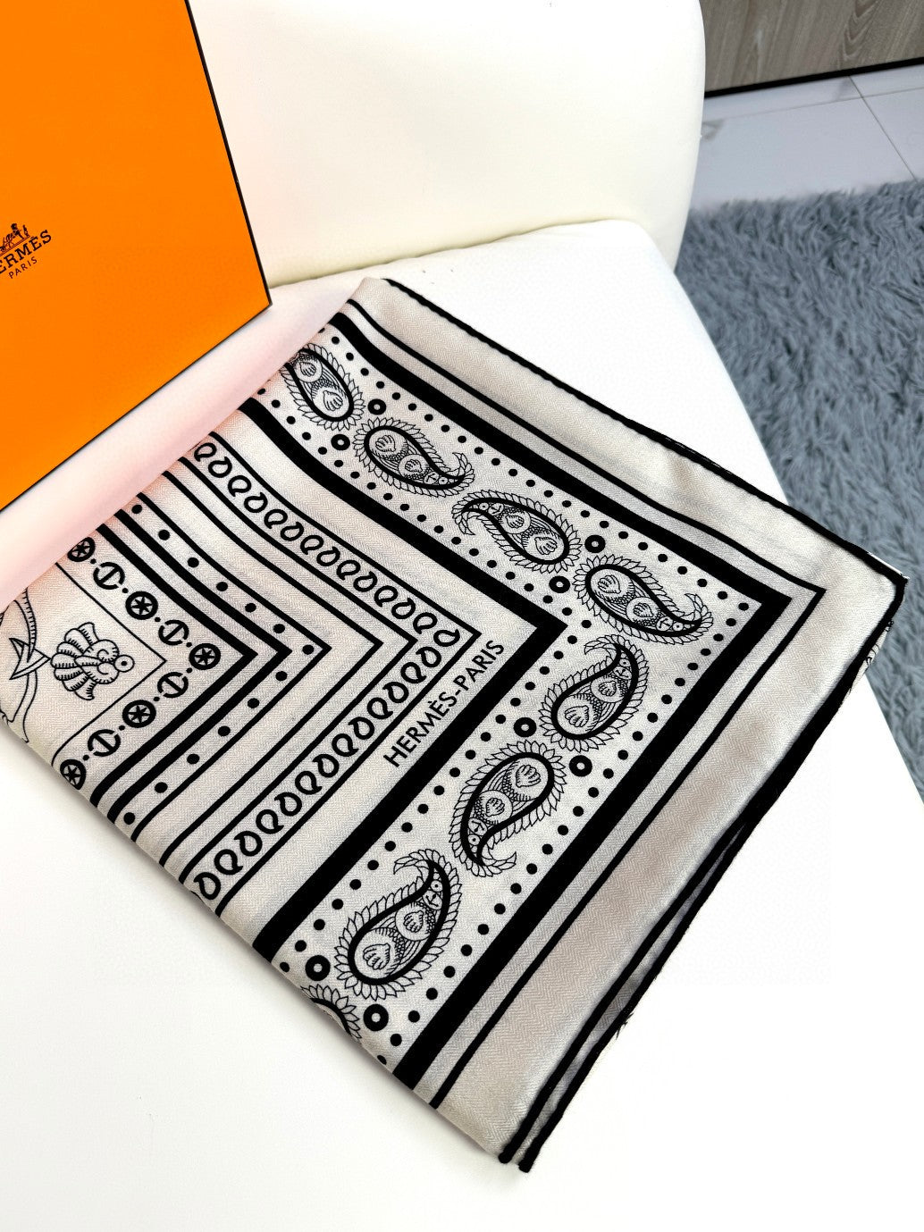 HERMES 25S SCARF 135 IN CASHMERE SILK 729038
