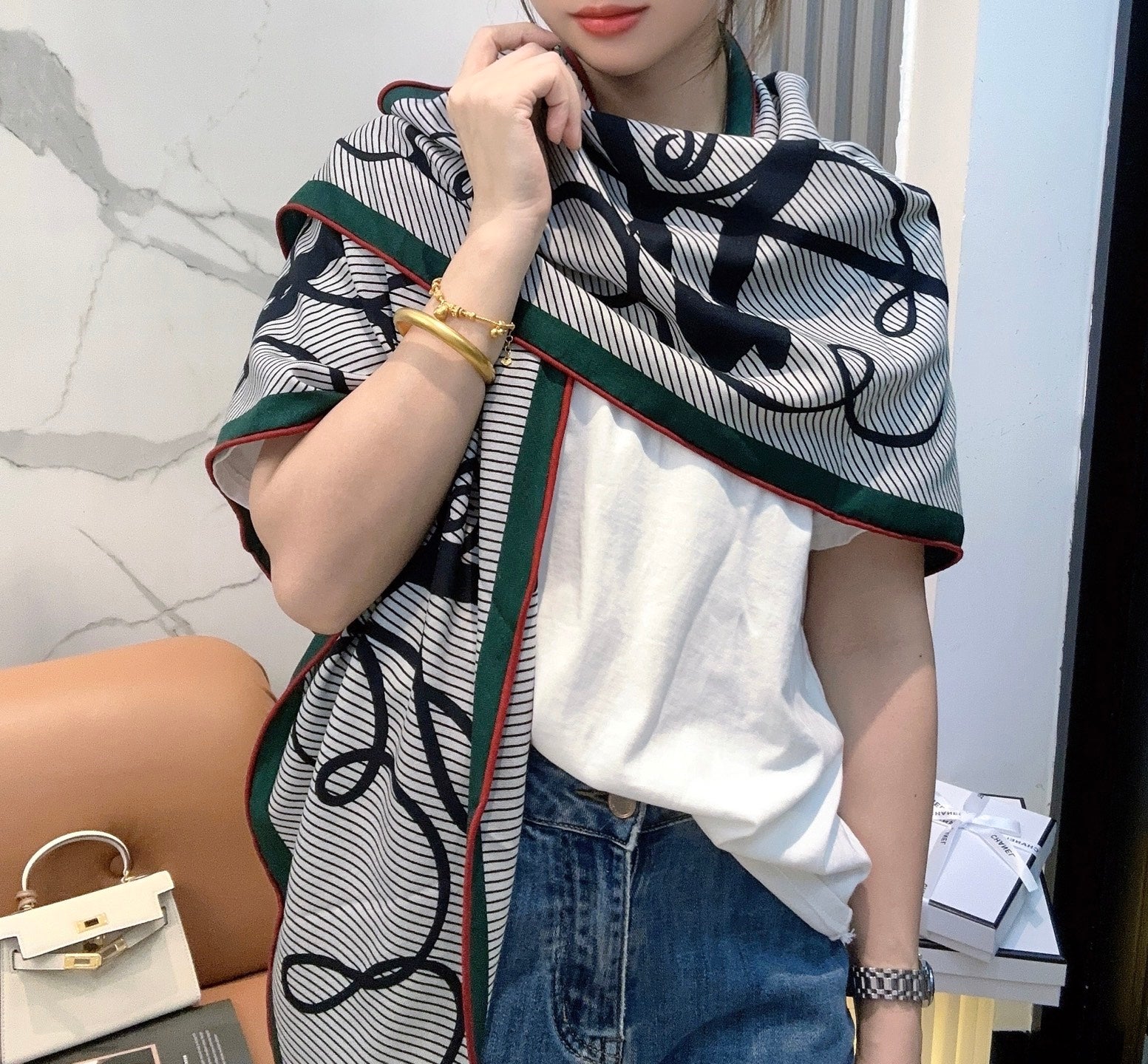 HERMES 25S SCARF 140 IN CASHMERE SILK 854530