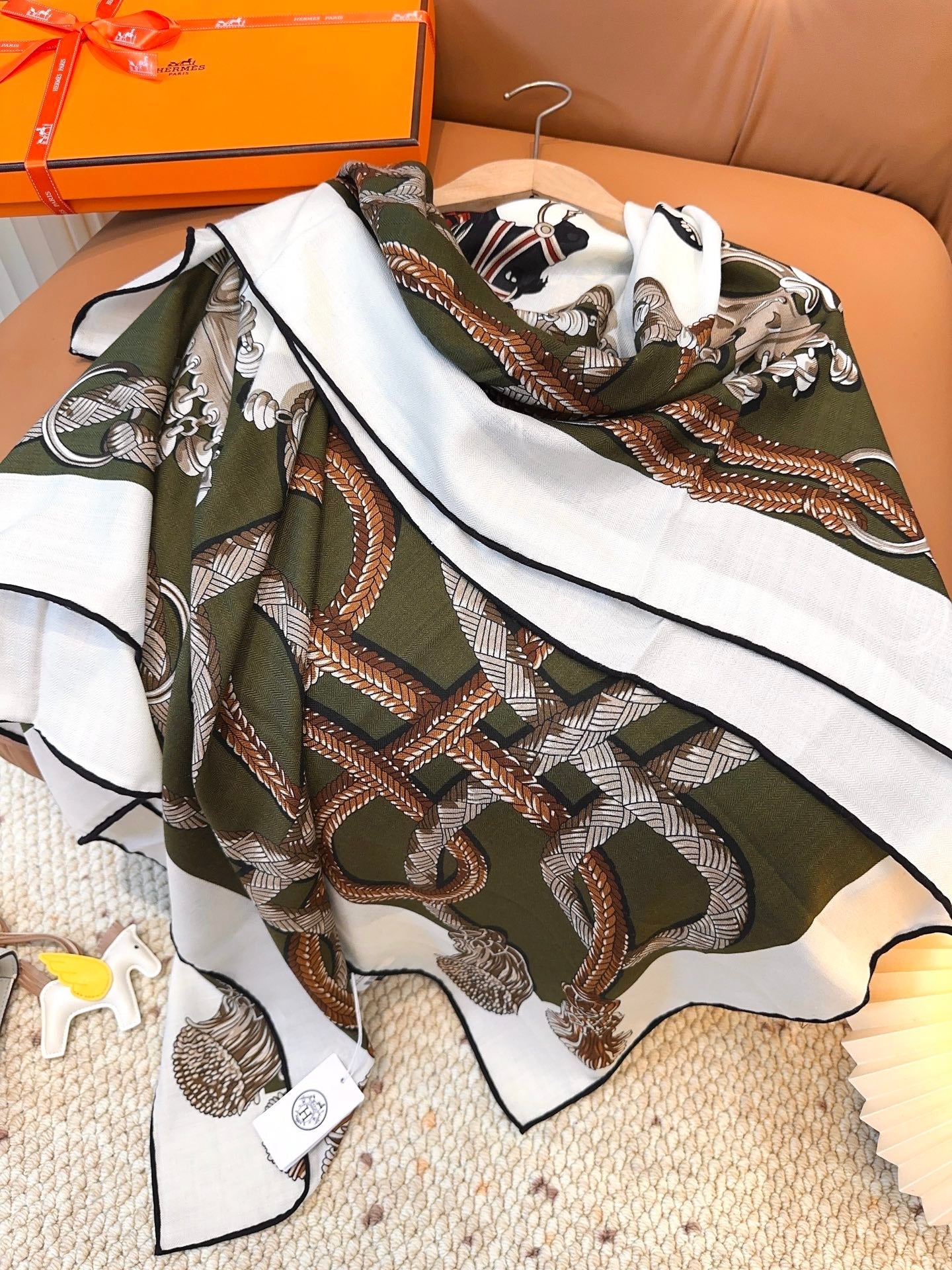 HERMES 25S SCARF 140 IN CASHMERE SILK 854538