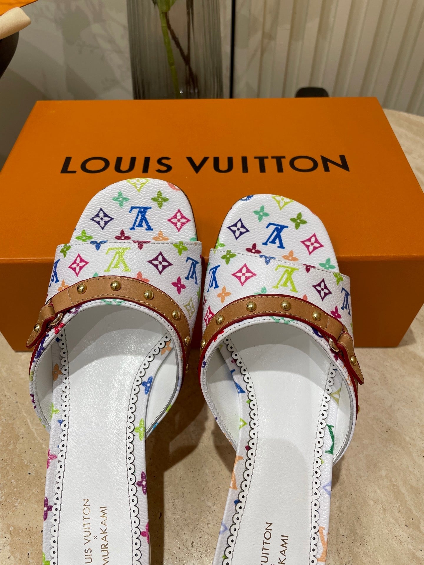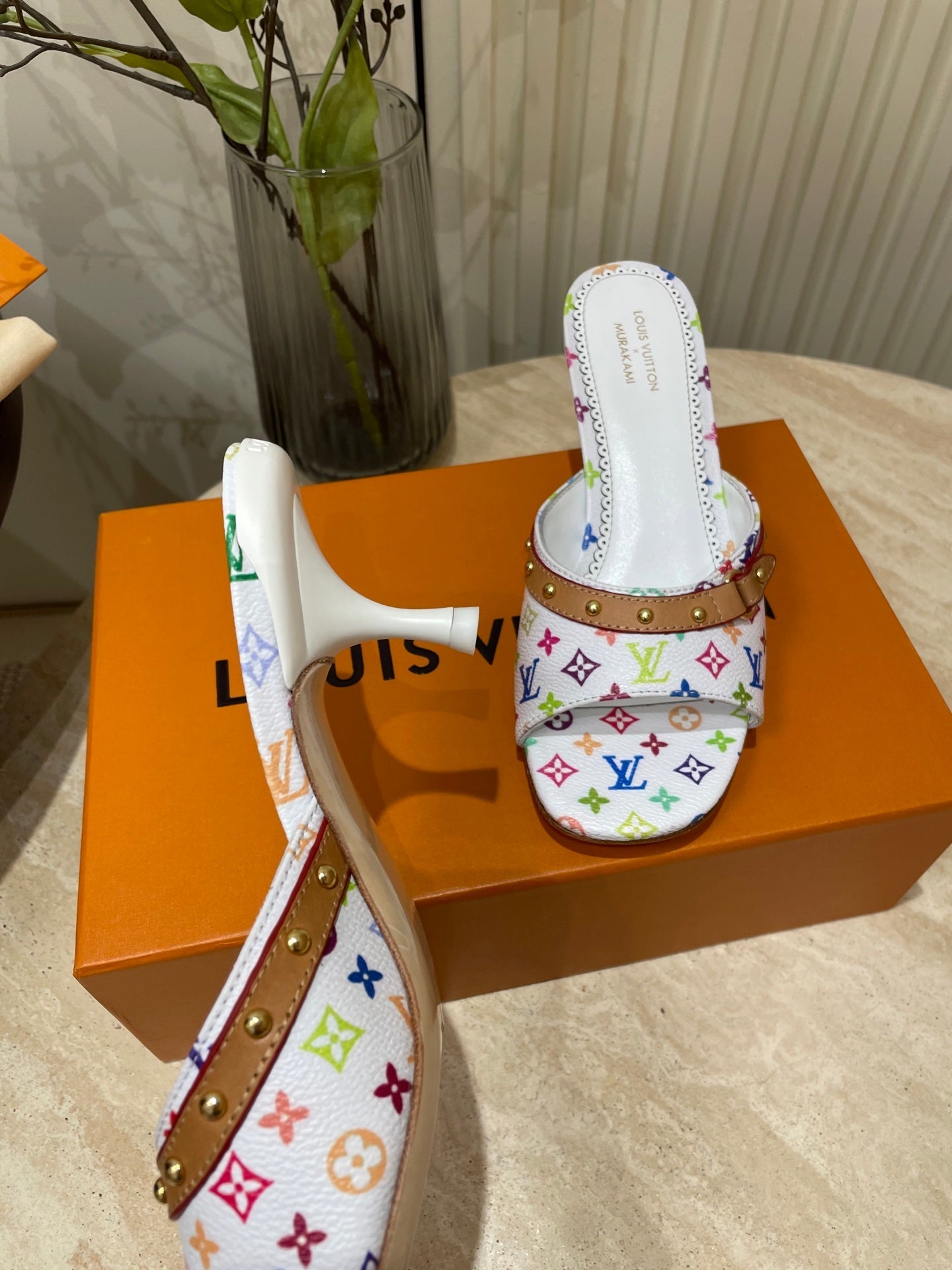 HIGH 5 CM MULES IN WHITE MONOGRAM LAMBSKIN