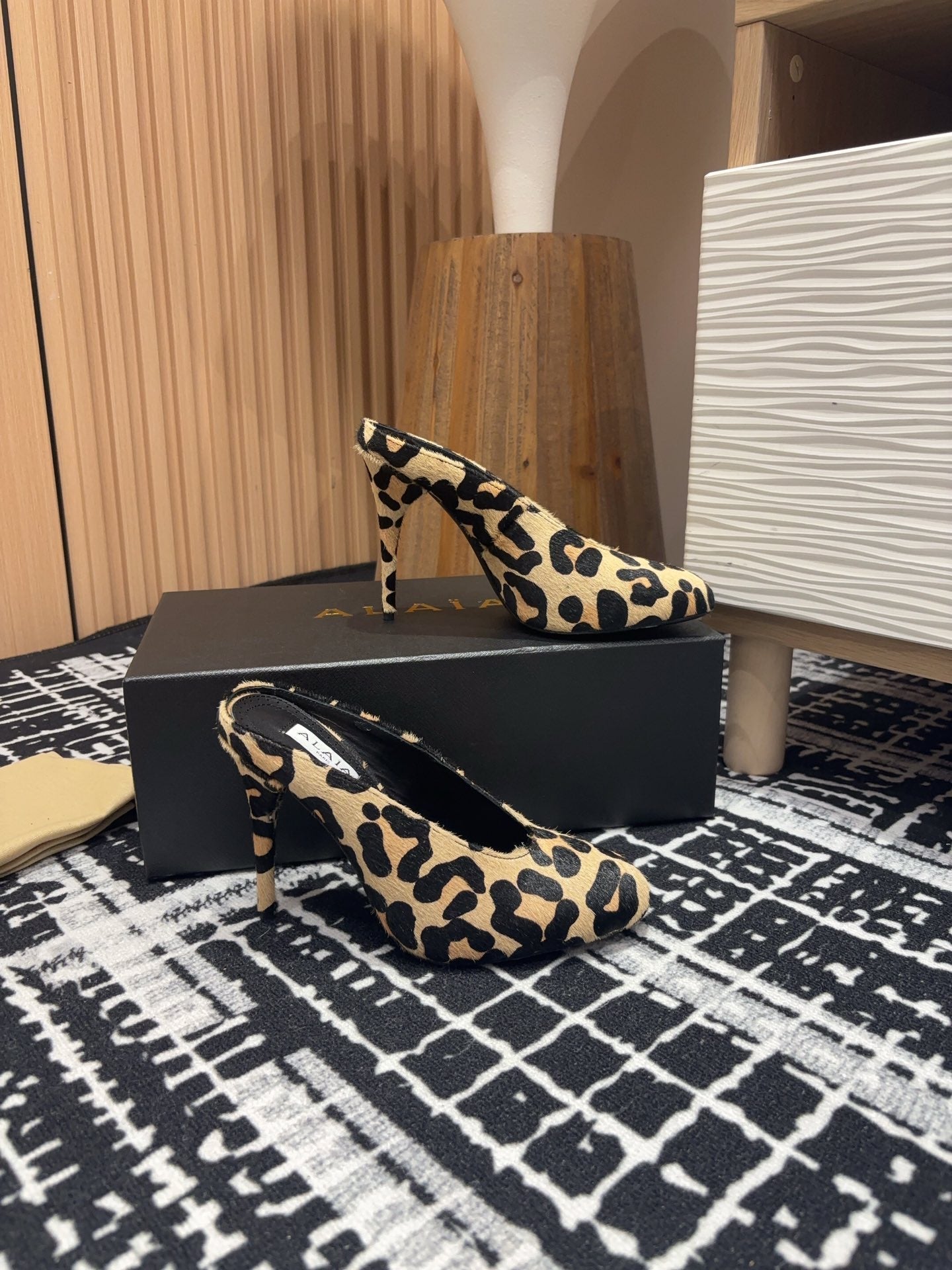 HIGH-HEEL 10 CM MULES IN CRYSLEOPARD PONY HAIR
