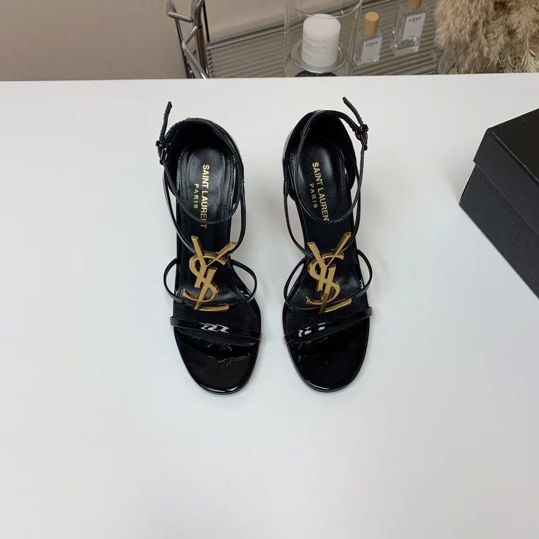 HIGH HEEL SANDALS IN BLACK CALFSKIN GOLD HARDWARE
