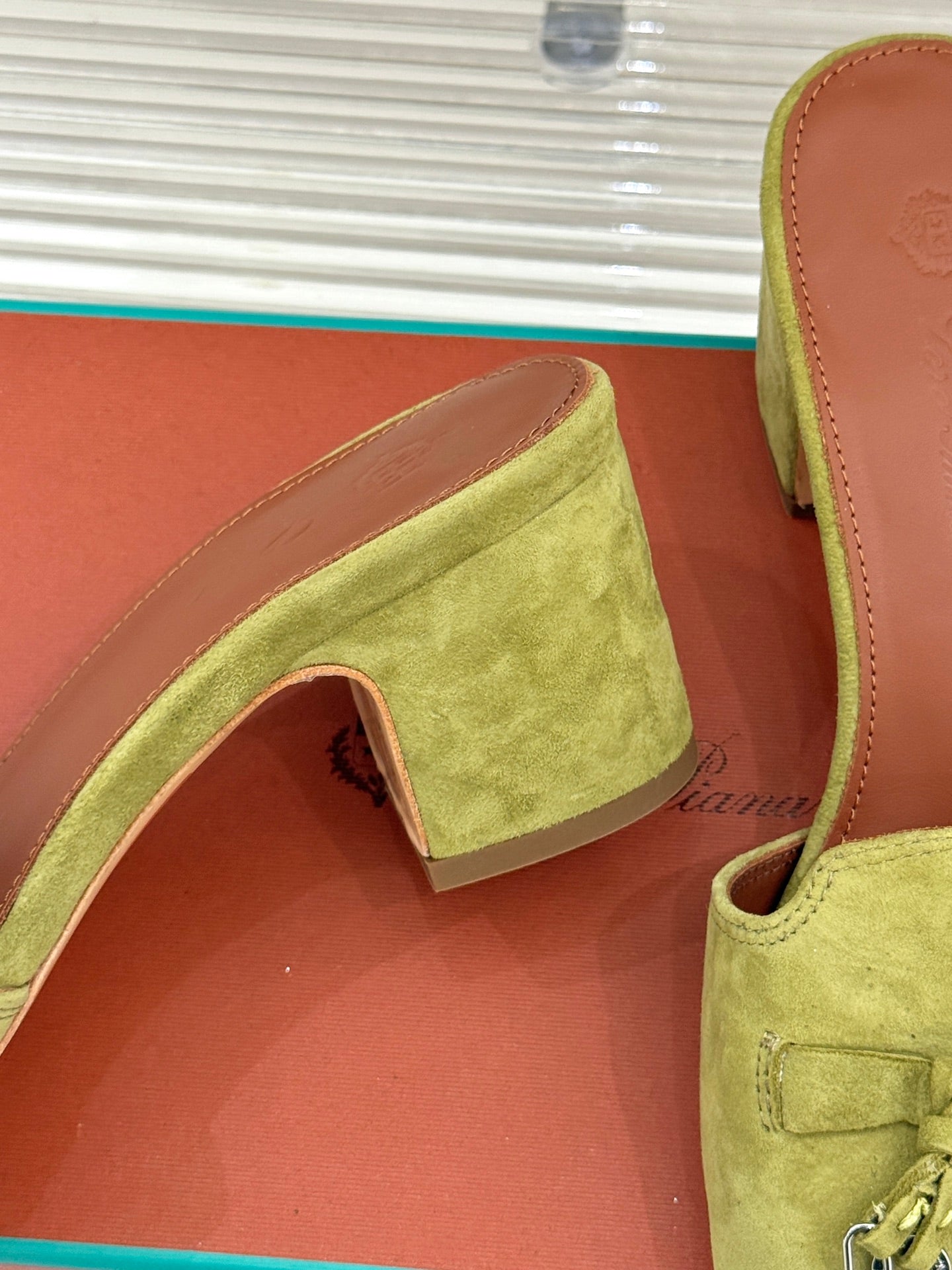 HIGH HEELS IN MOSS YELLOW SUEDE AND LAMBSKIN