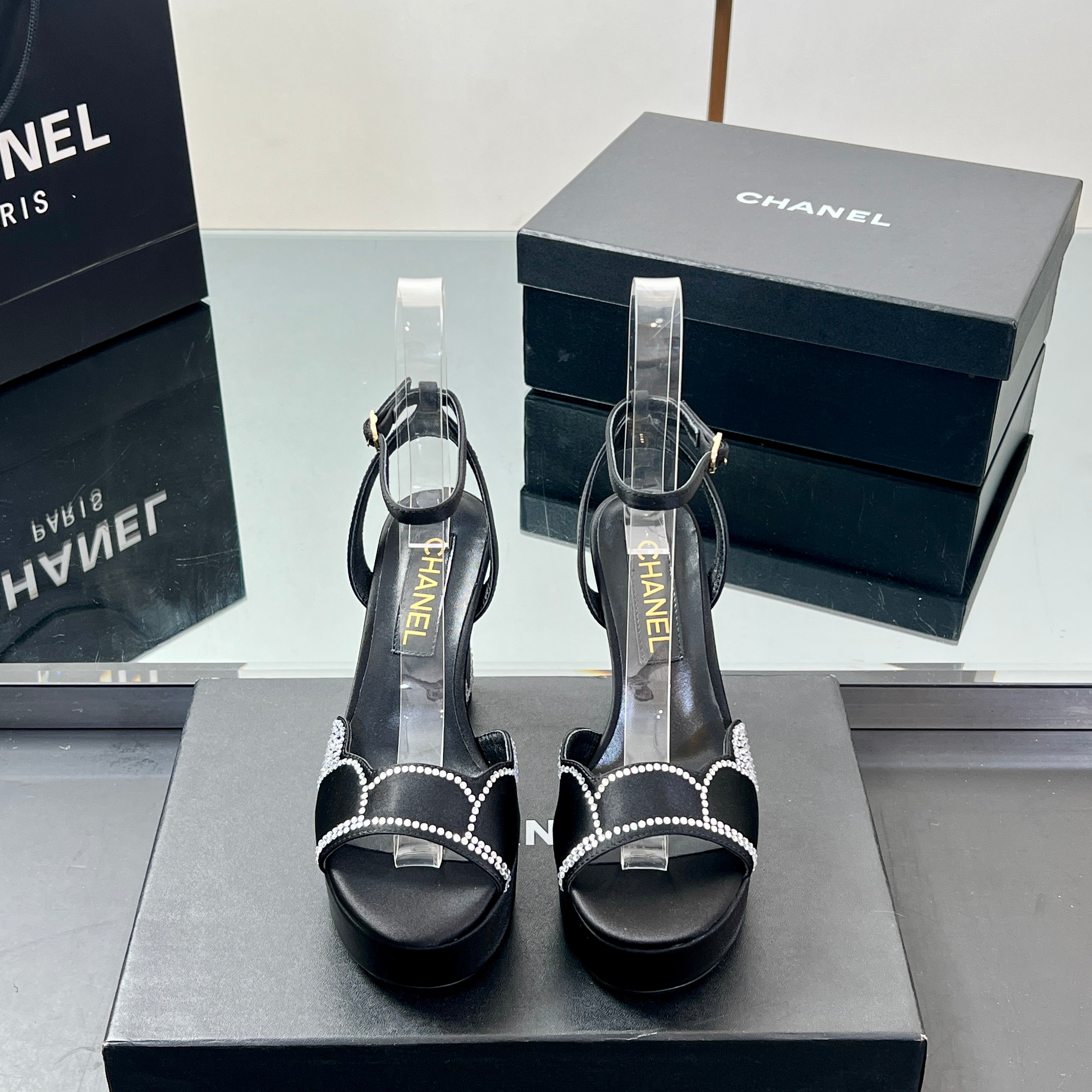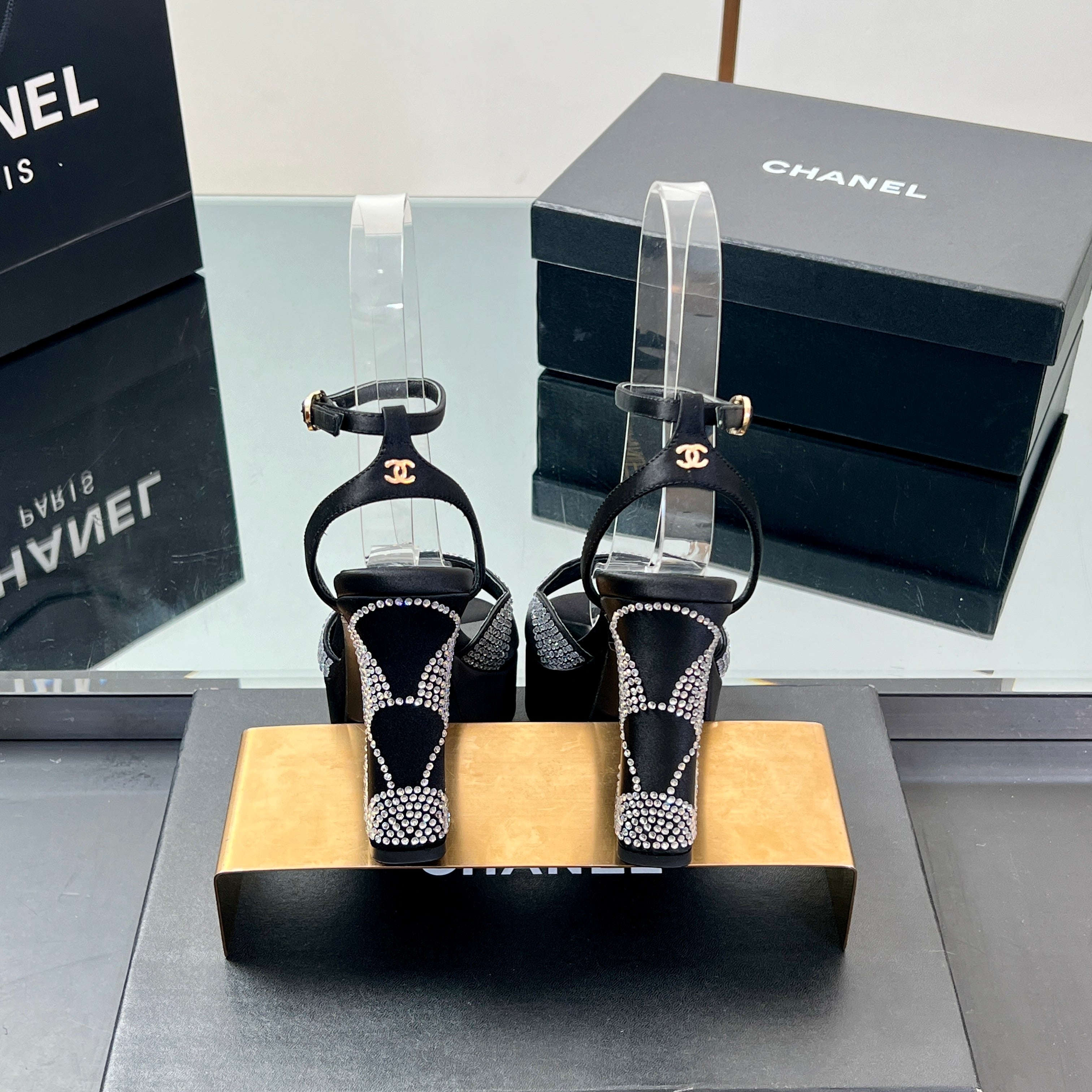 HIGH HEELS SANDAL 90 MM IN BLACK CALFSKIN AND STONE