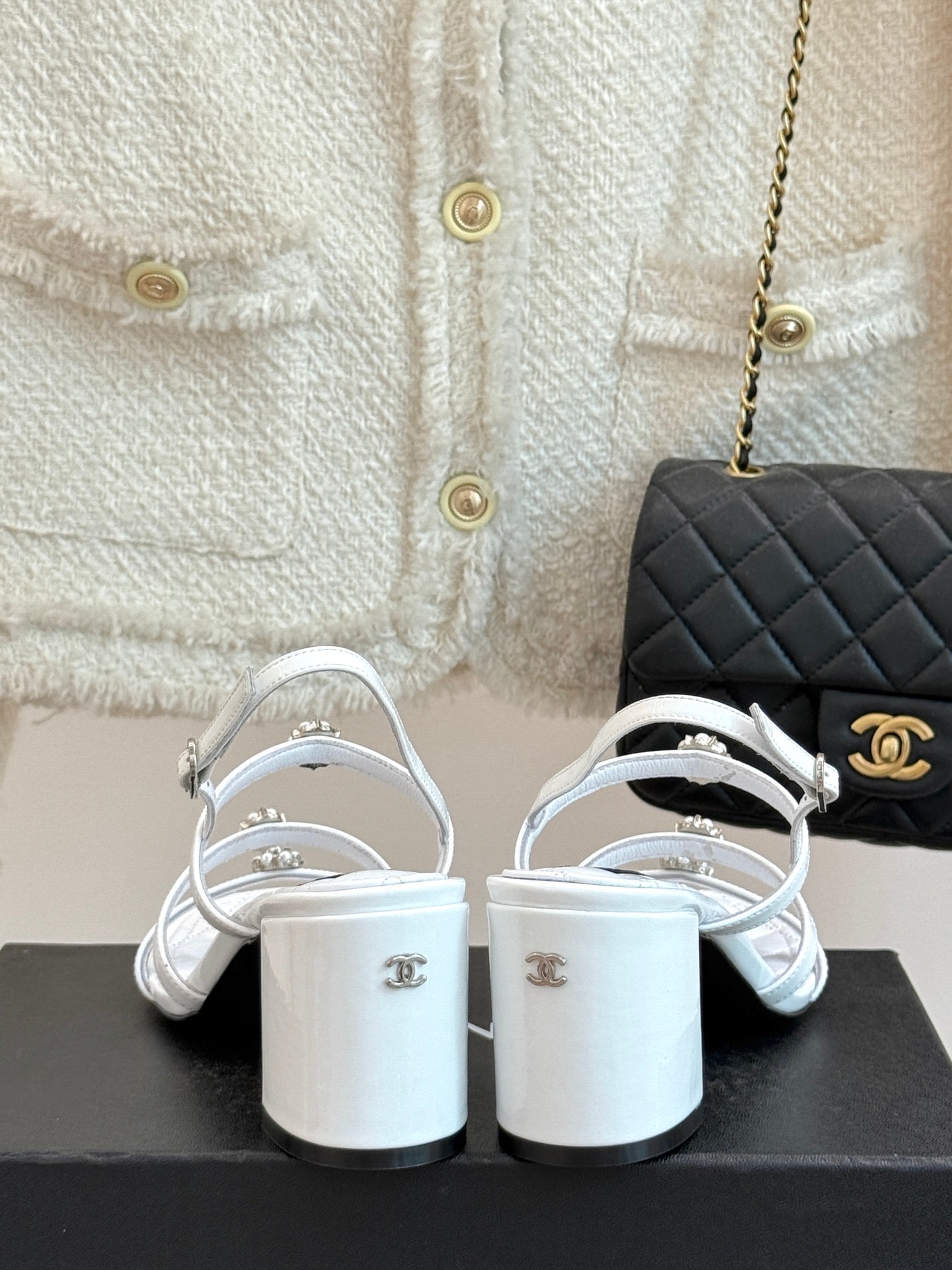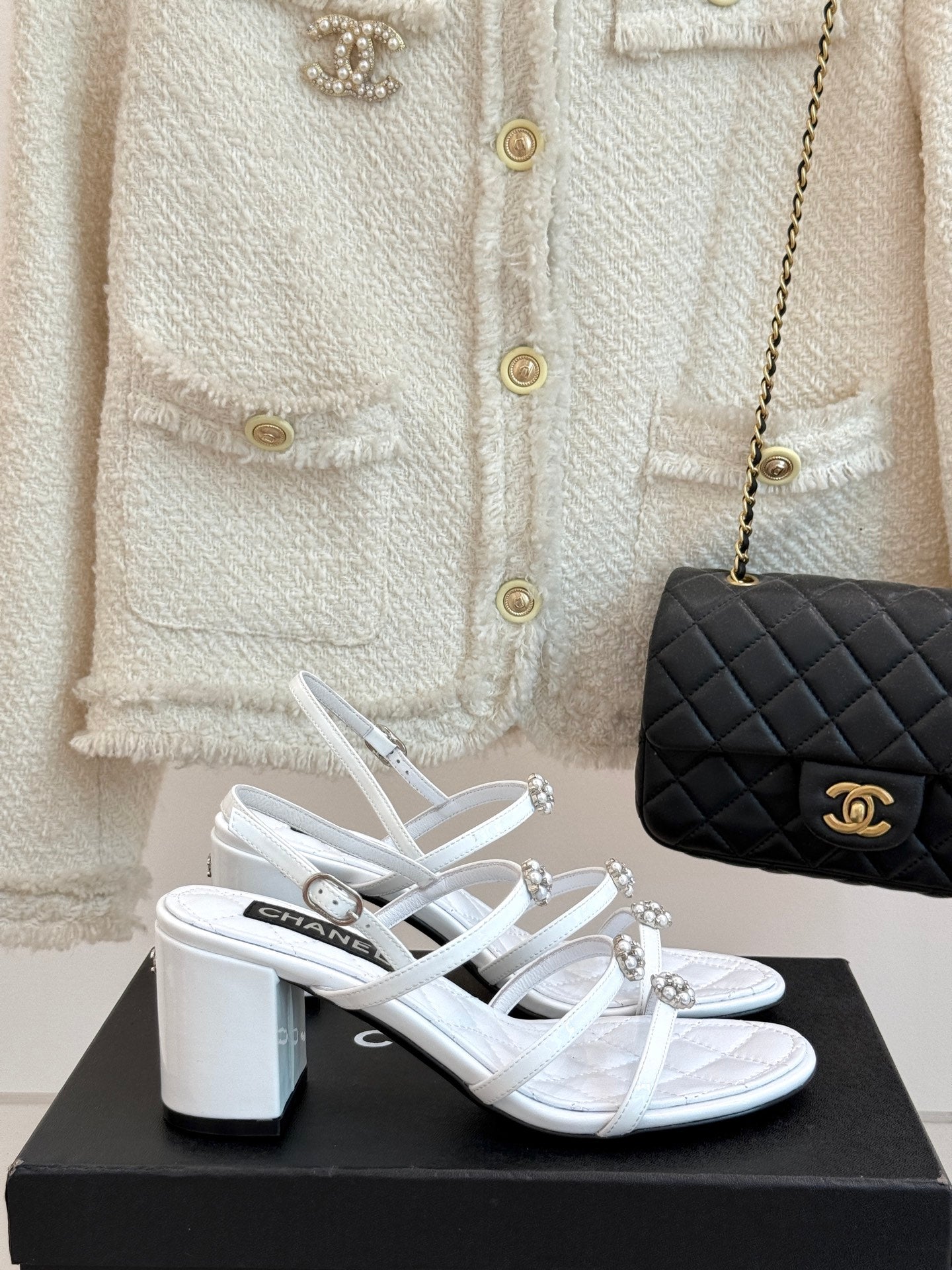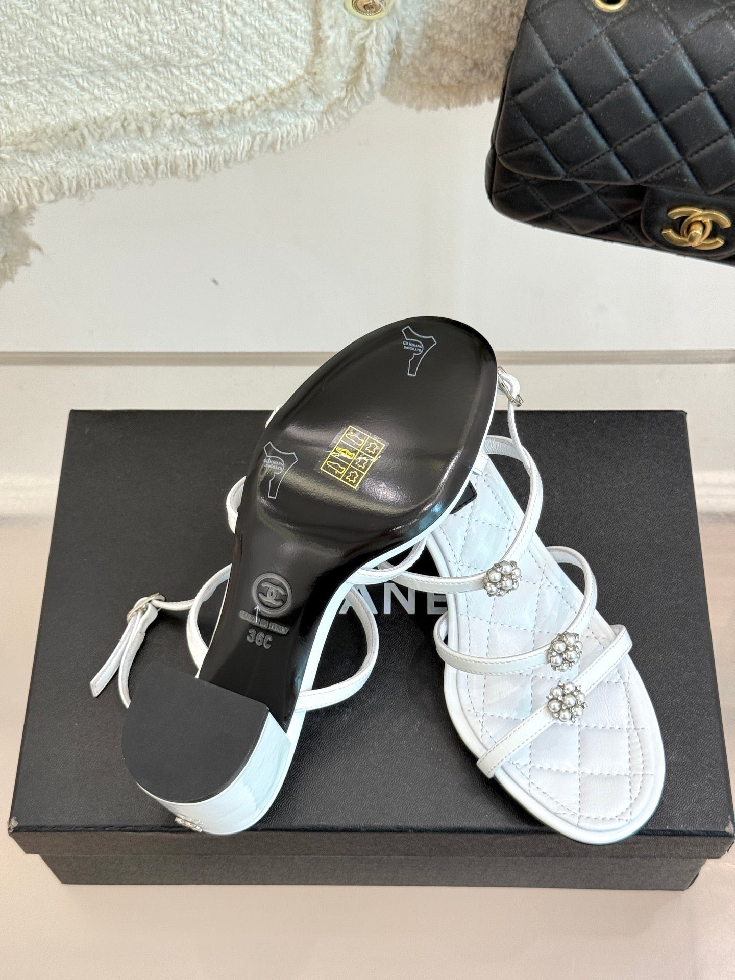 HIGH HEELS SANDAL IN WHITE LAMBSKIN PEARL FLOWERS