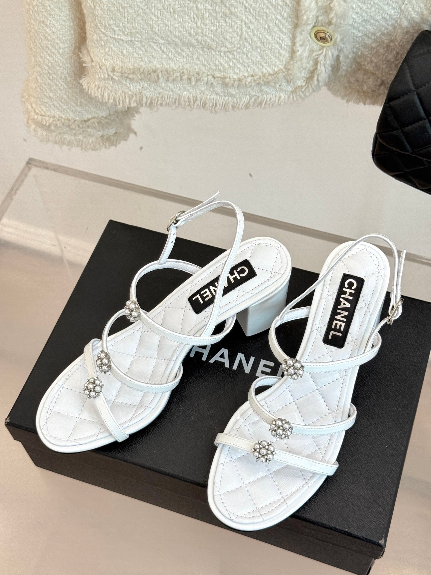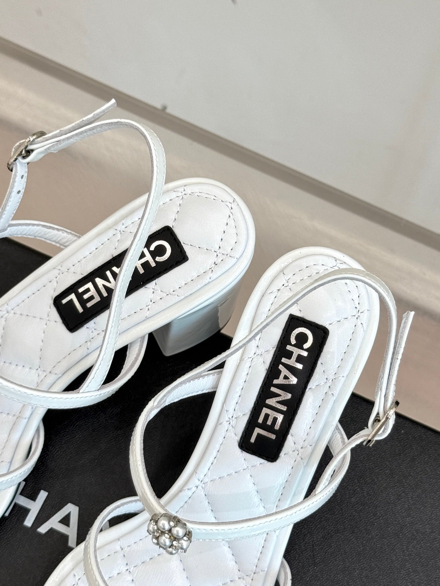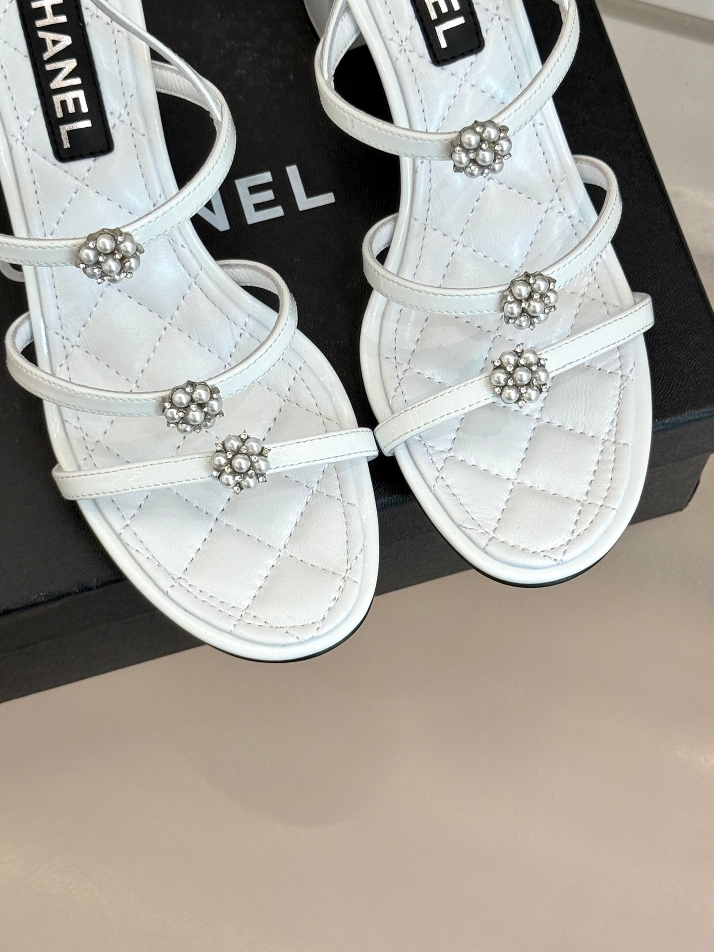 HIGH HEELS SANDAL IN WHITE LAMBSKIN PEARL FLOWERS