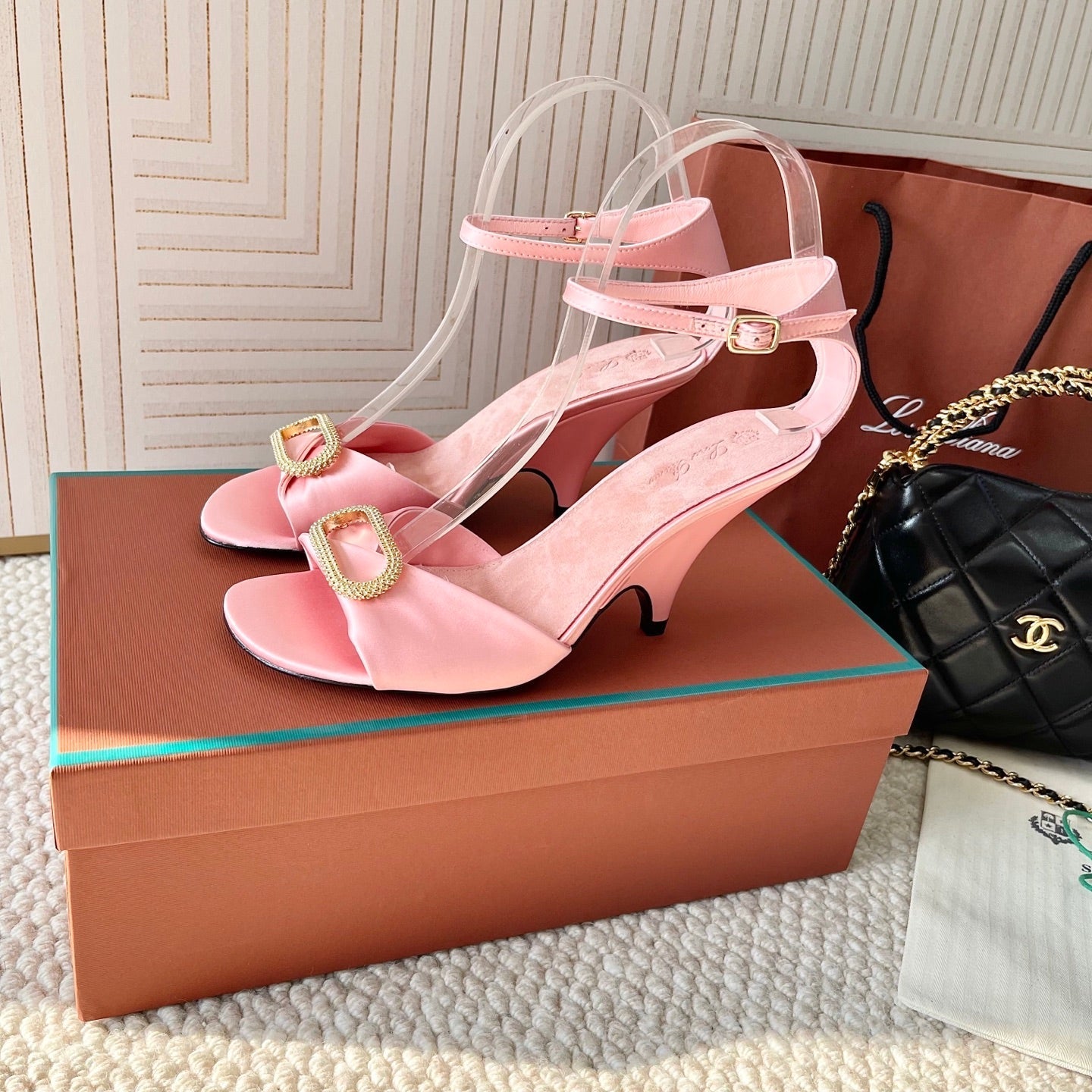 HIGH HEELS SANDALS 80 MM IN PASTEL PINK SATIN MIX SUEDE