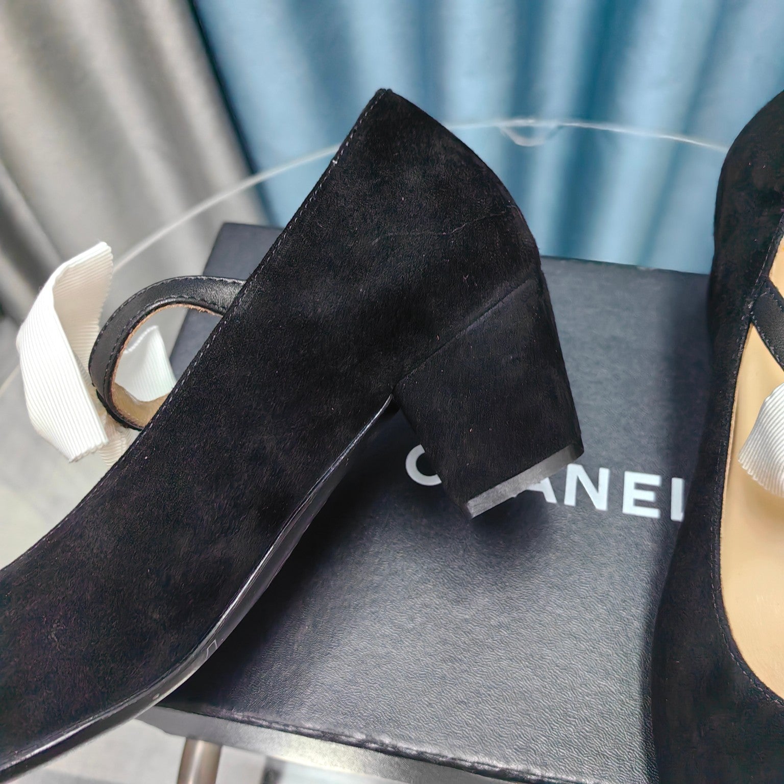 HIGH MARY JANE SHOES BLACK SUEDE WITH WHITE BOW