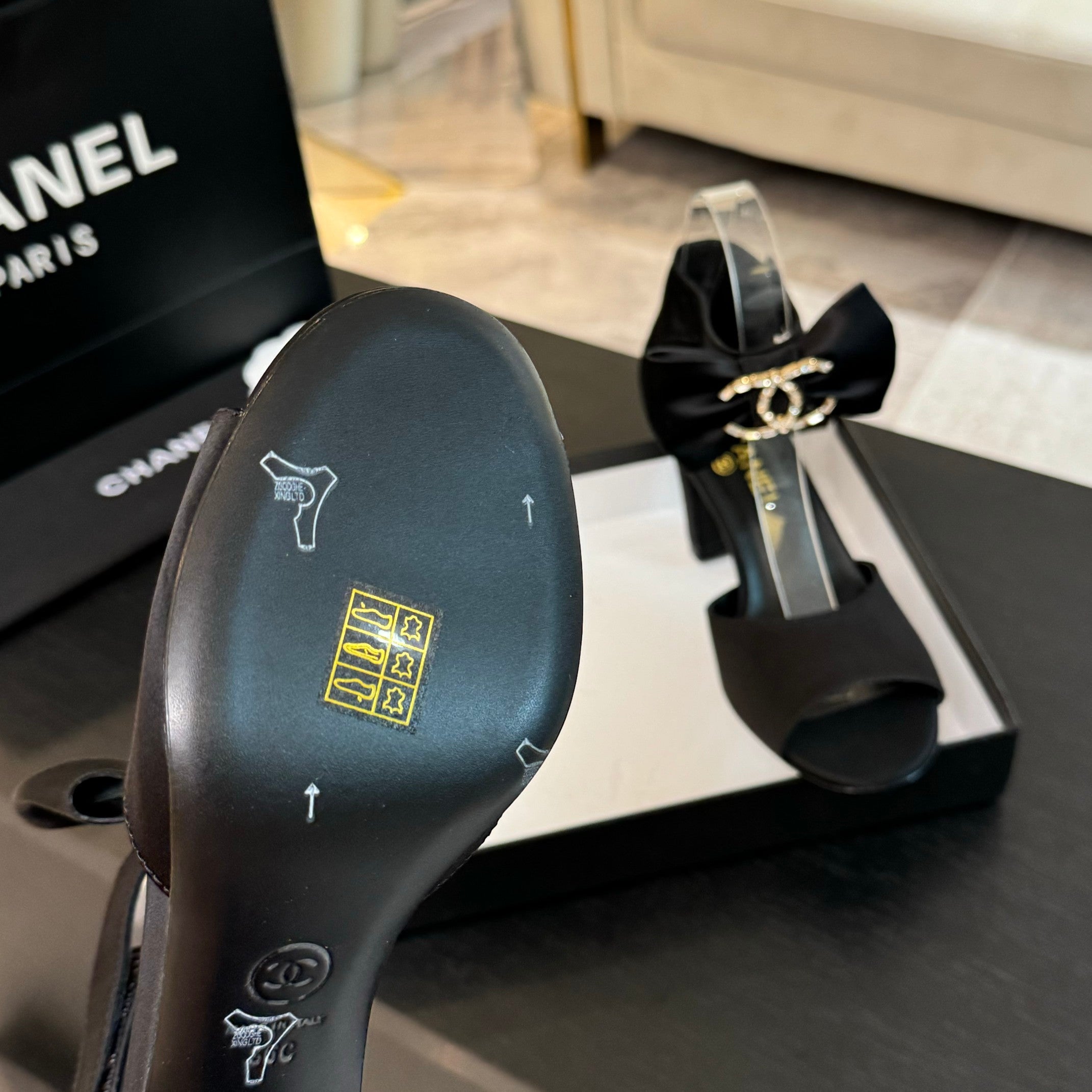 HIGH SANDAL OPEN TOE IN BLACK SATIN