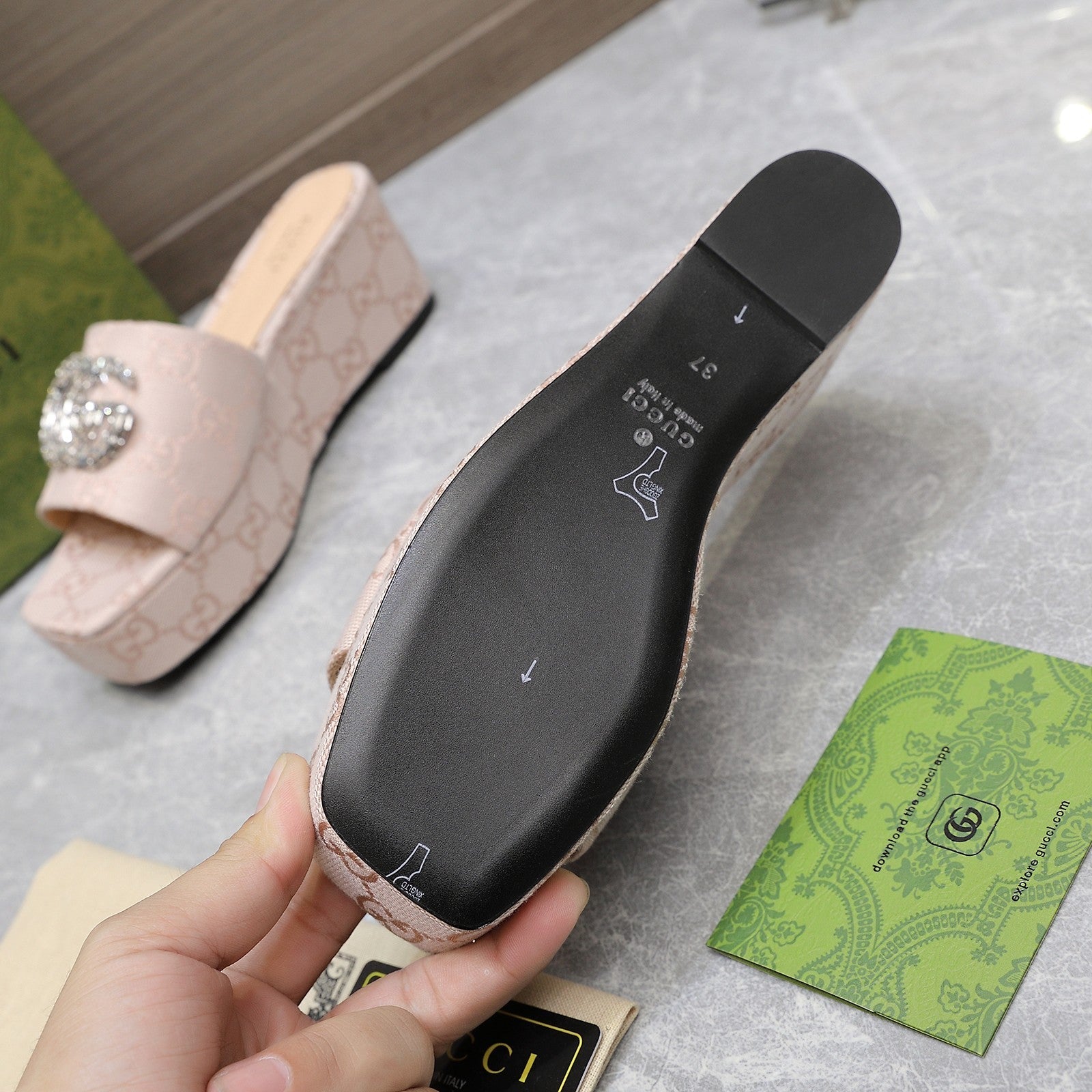 HIGH WEDGE PLATFORM WITH DOUBLE G IN ALMOND BEIGE CANVAS