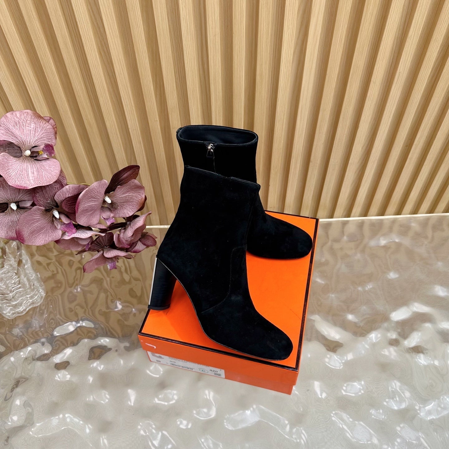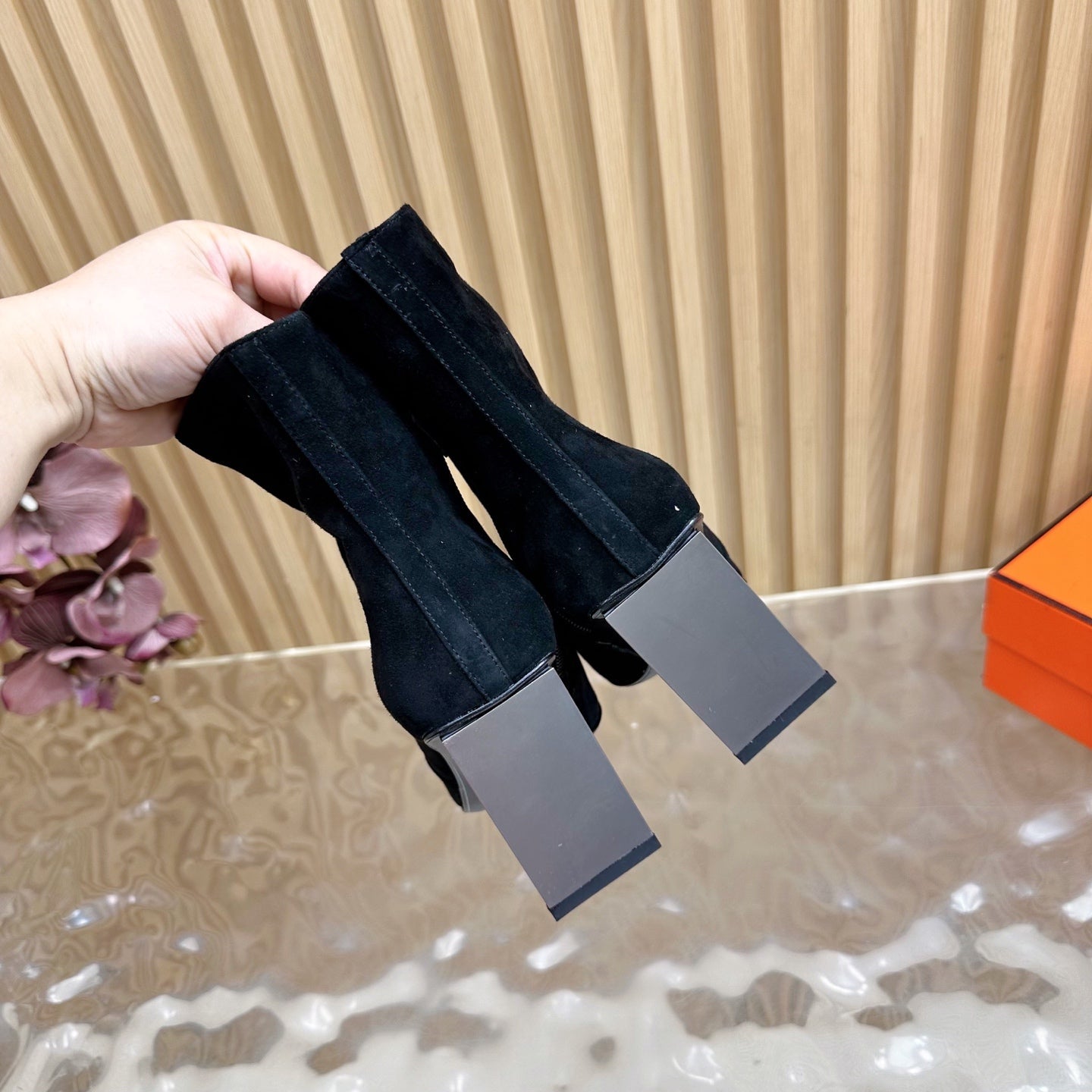 HM 25S ANKLE BOOTS 70 MM IN BLACK SUEDE