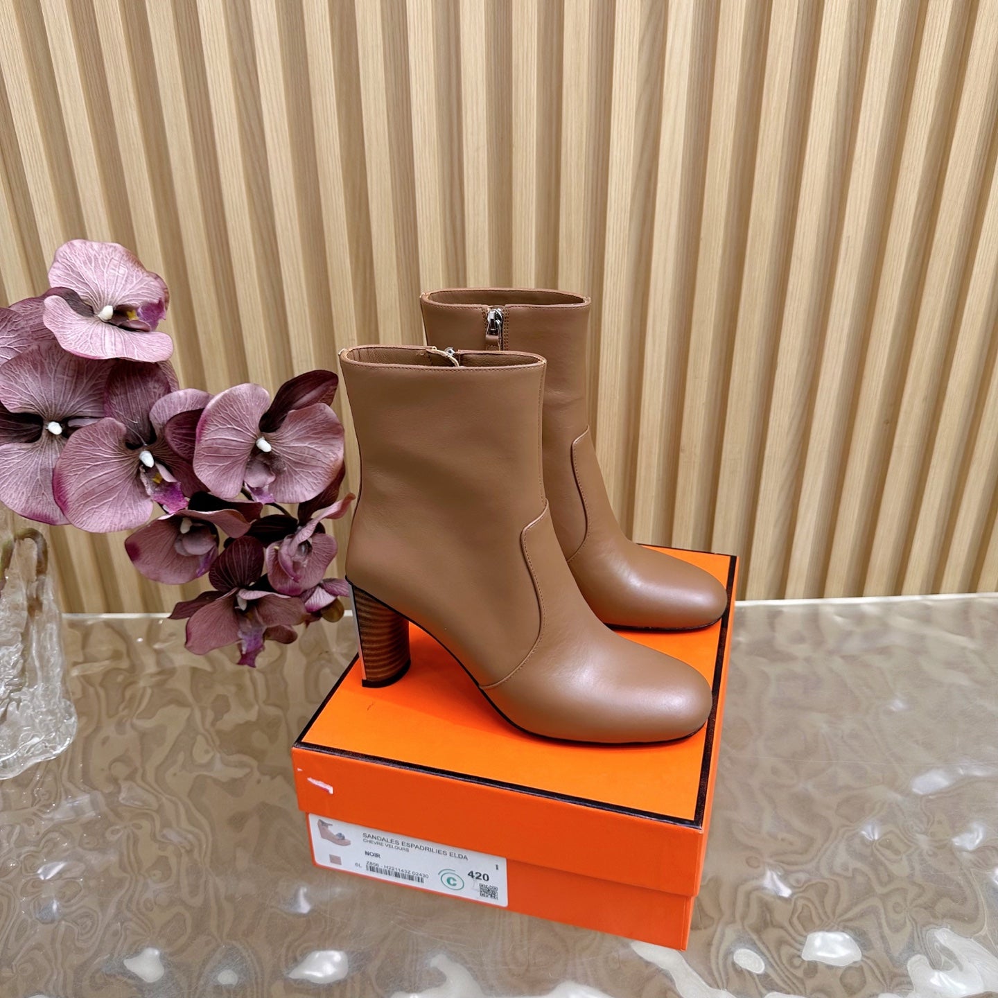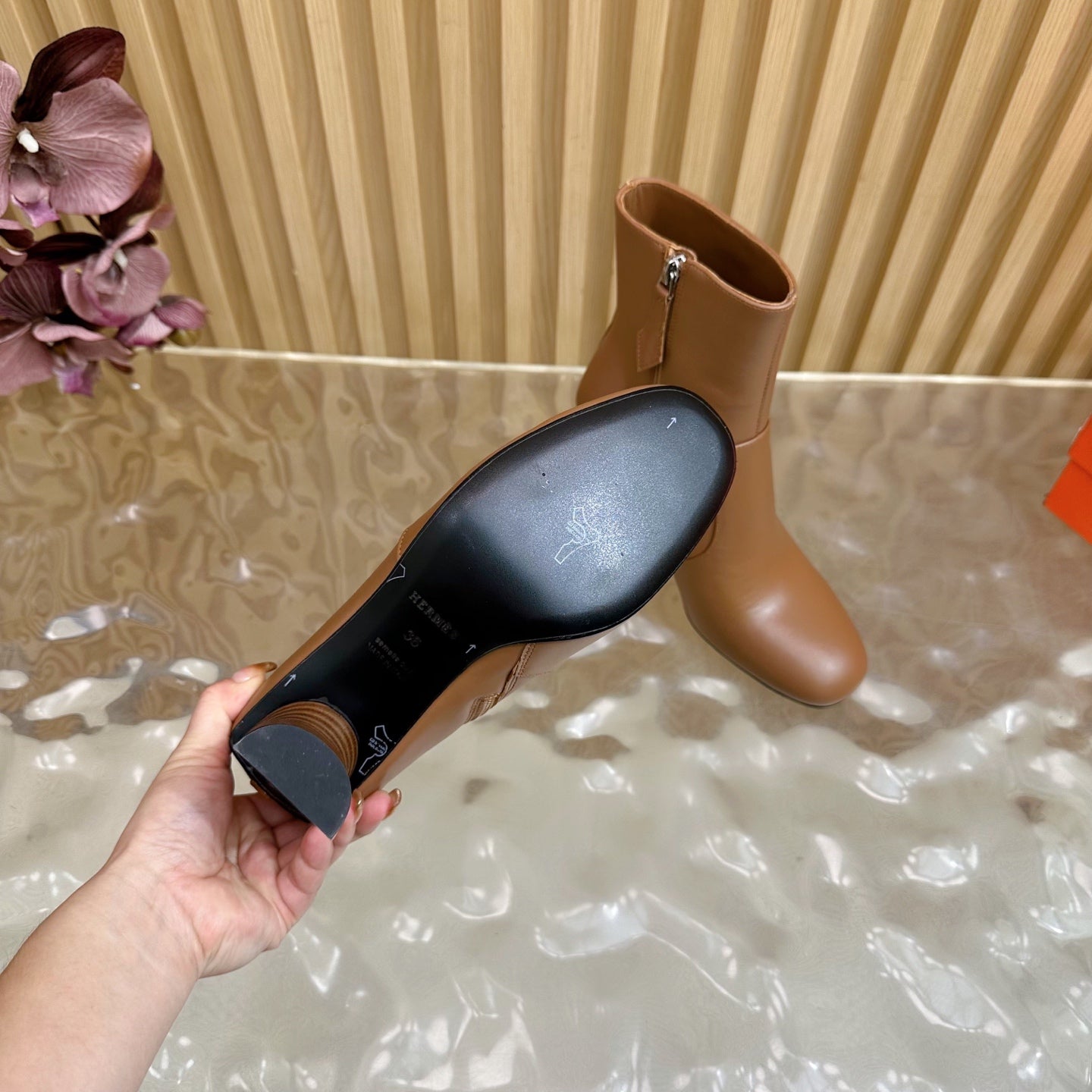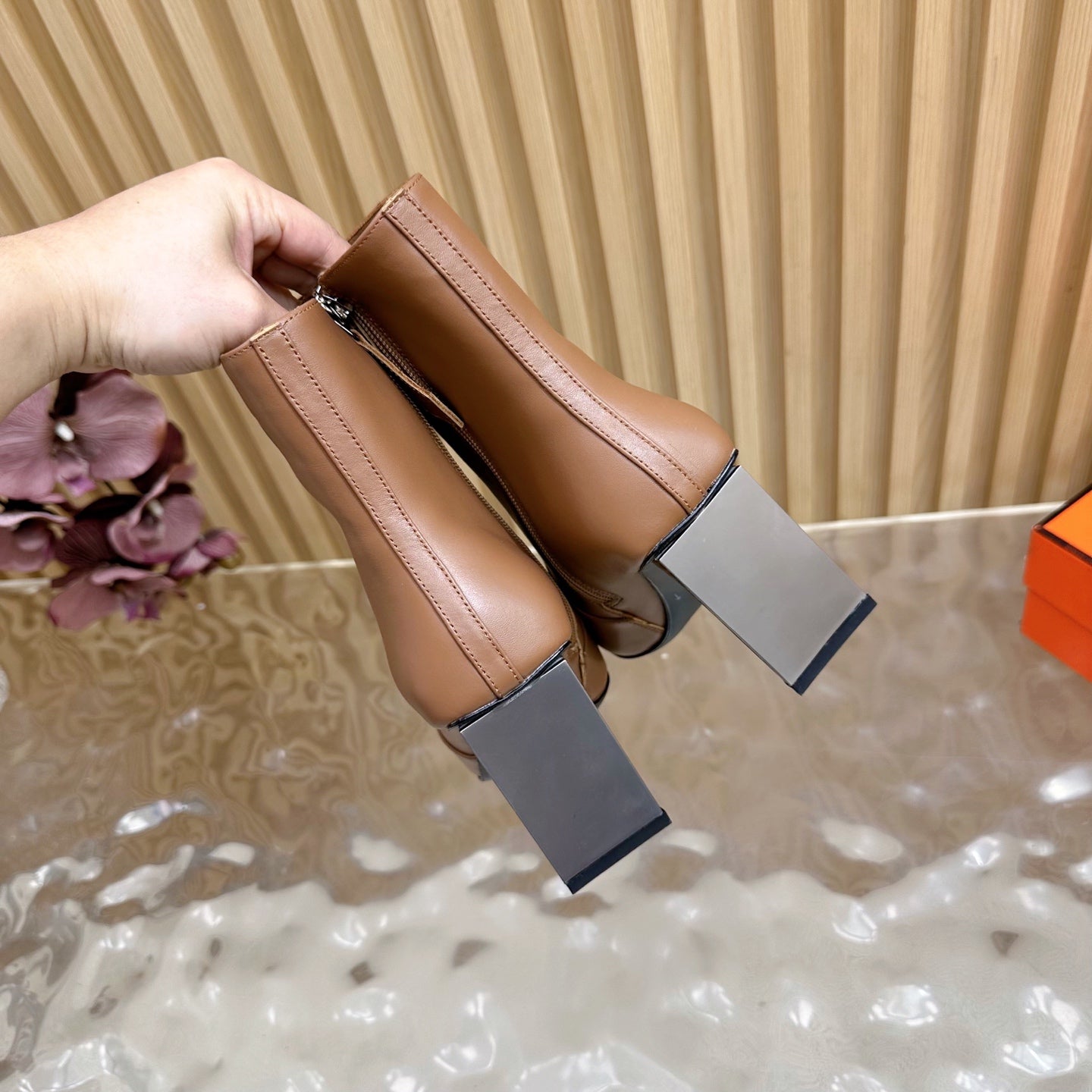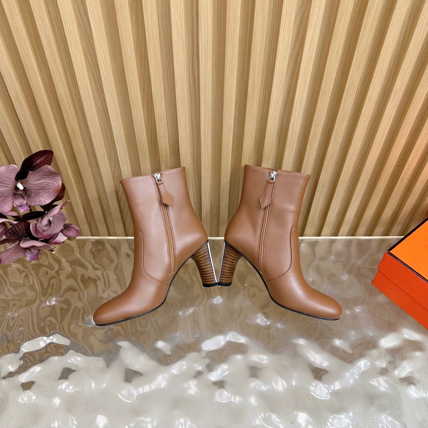 HM 25S ANKLE BOOTS 70 MM IN BROWN LAMBSKIN