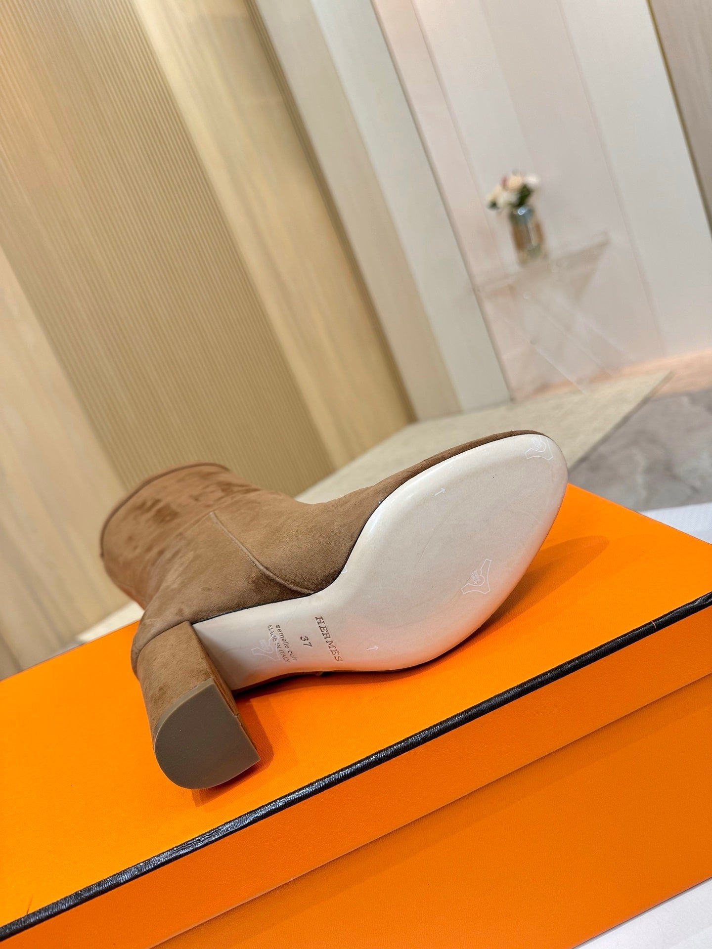 HM 25S KELLY KNEE-HIGH BOOTS IN BROWN SUEDE WITH SILVER HARDWARE